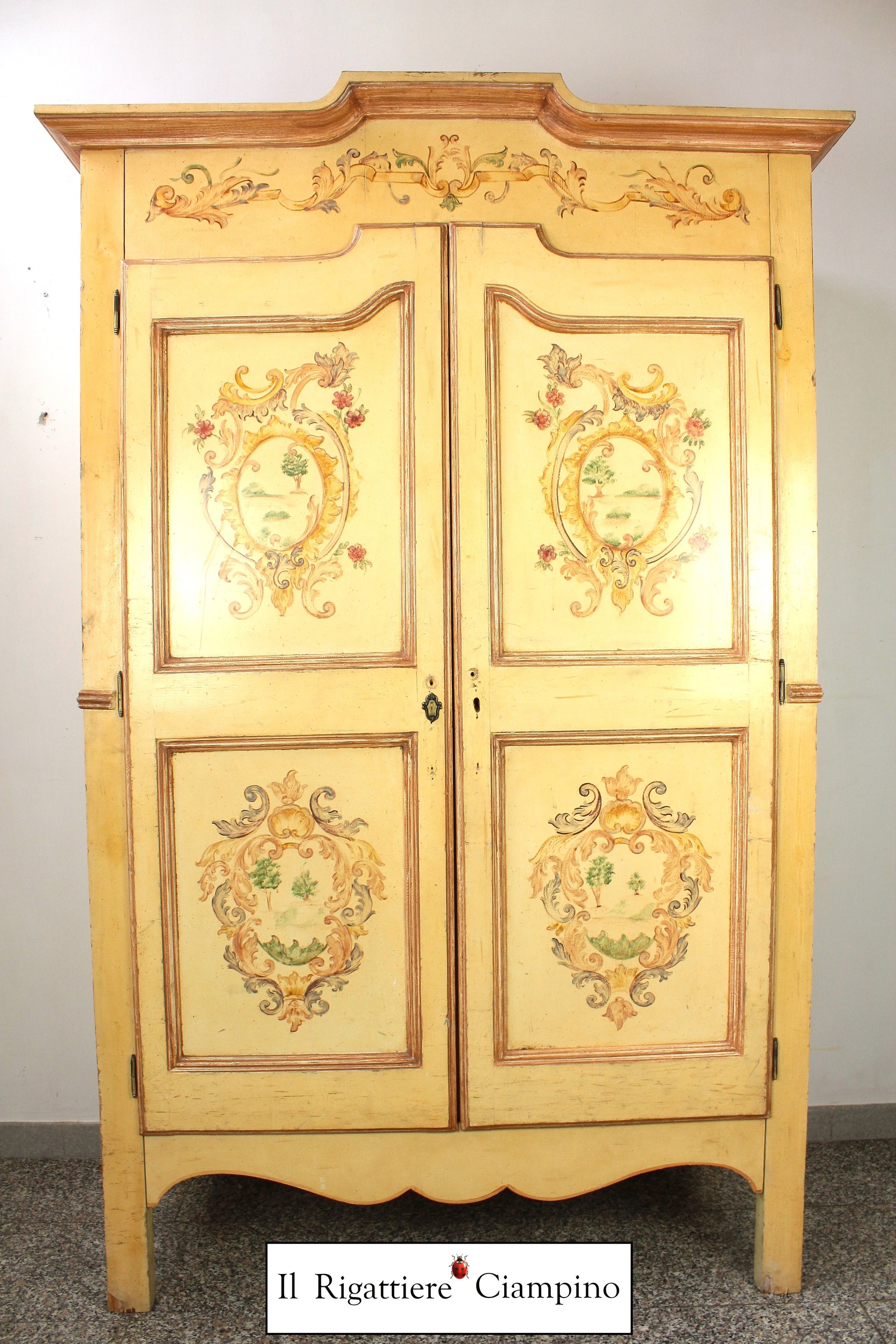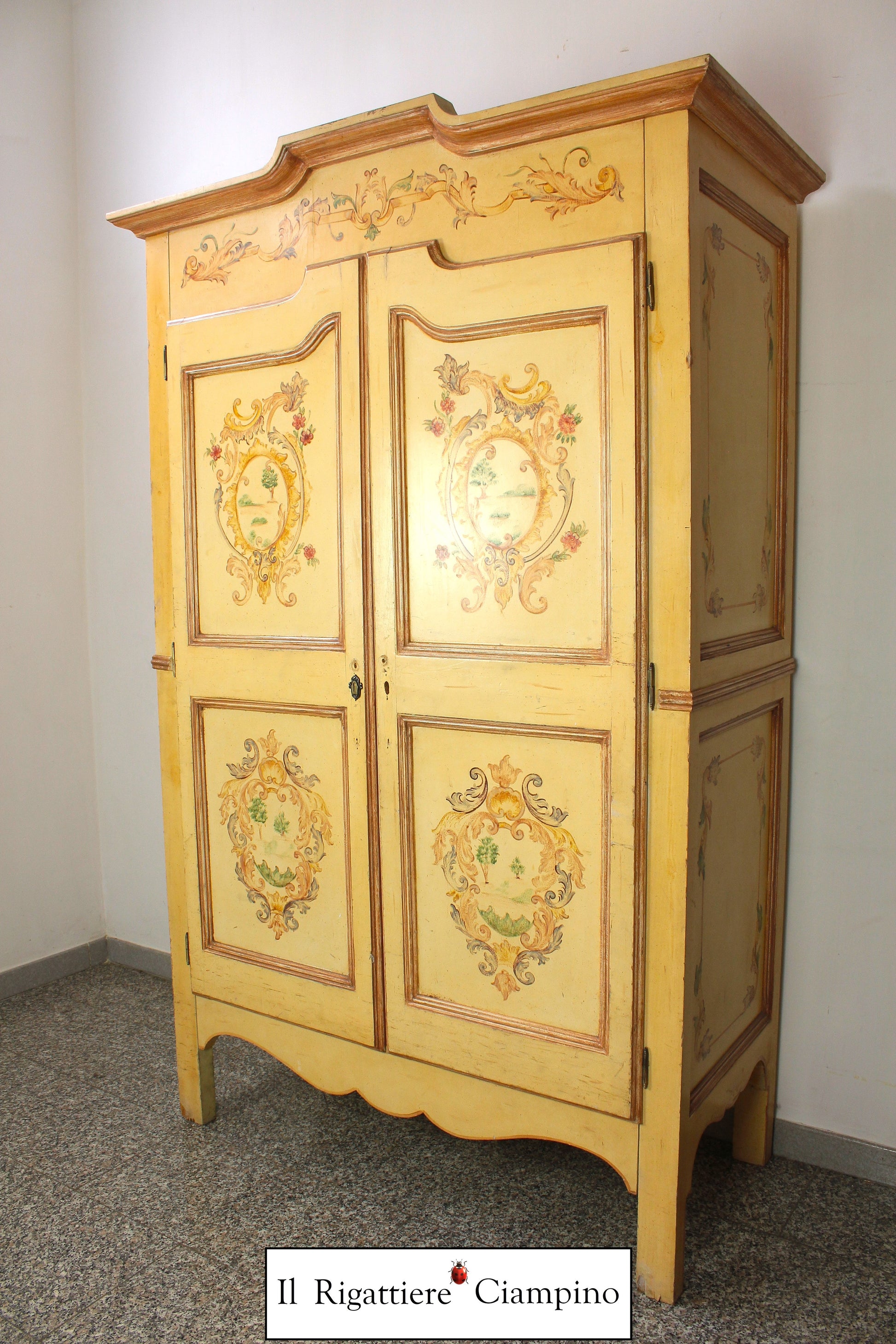 Il Rigattiere Ciampino propone un armadio di colore avorio, perfetto per le case con un arredamento ricercato. In stile decapè, decorazione veneziana dipinta, in legno. Questo armadio con due ante è capiente e adatto a una stanza piccola, per ottimizzare gli spazi. Prezzo escluso di spedizione o consegna. Disponibile consegna su Roma e dintorni, spedizione nazionale (isole escluse).