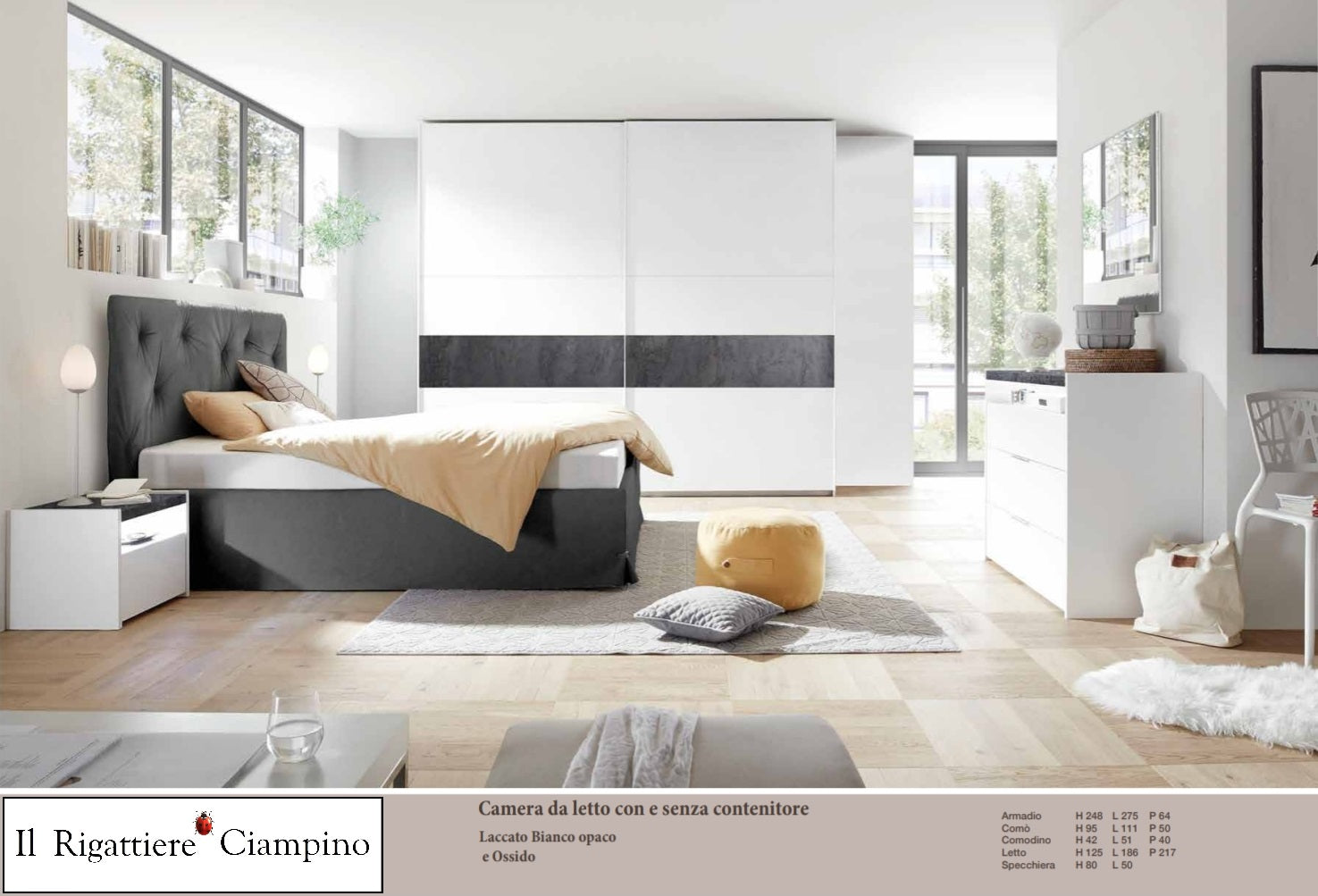 Camera da letto bianco opaco e grigio antracite con o senza contenitore