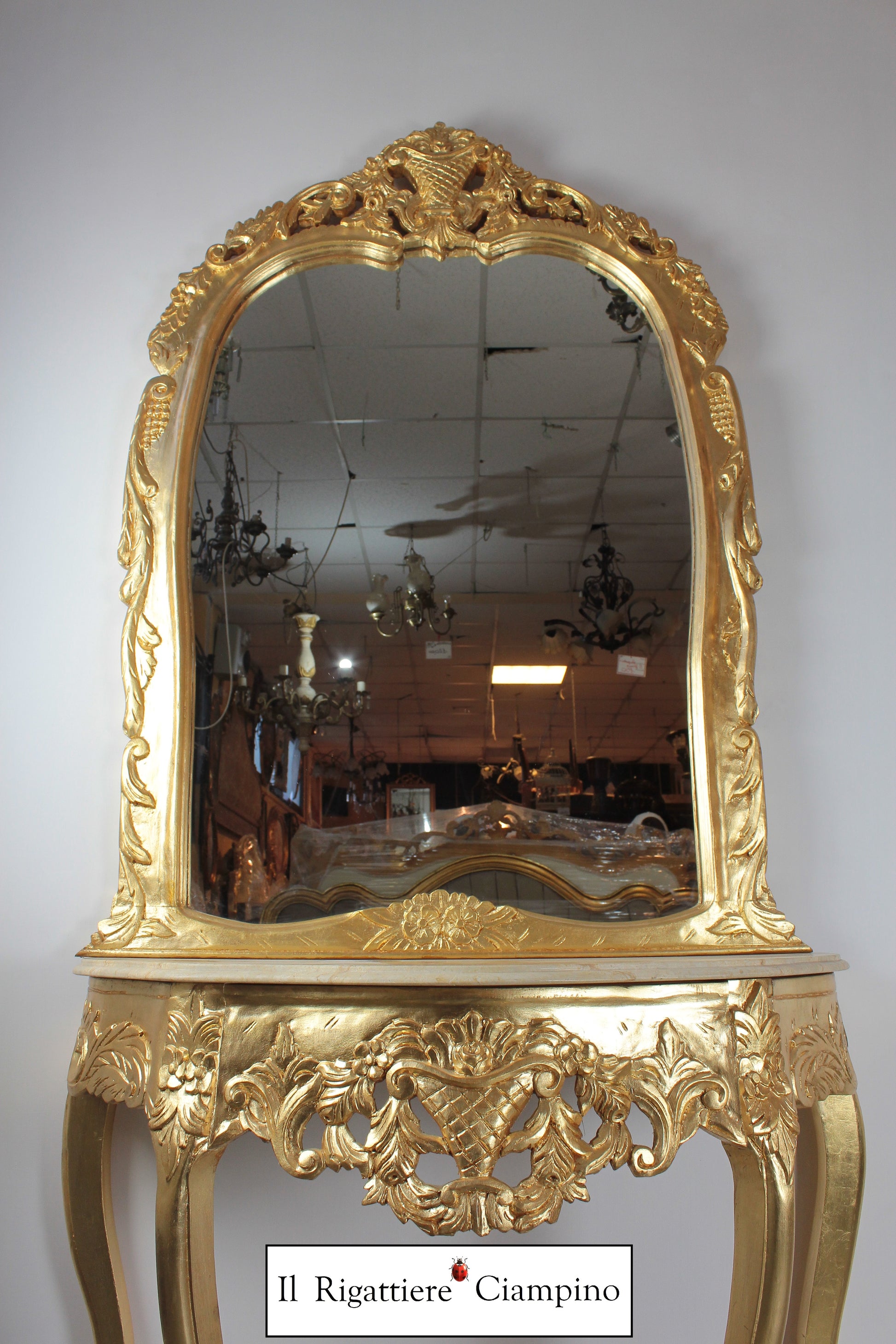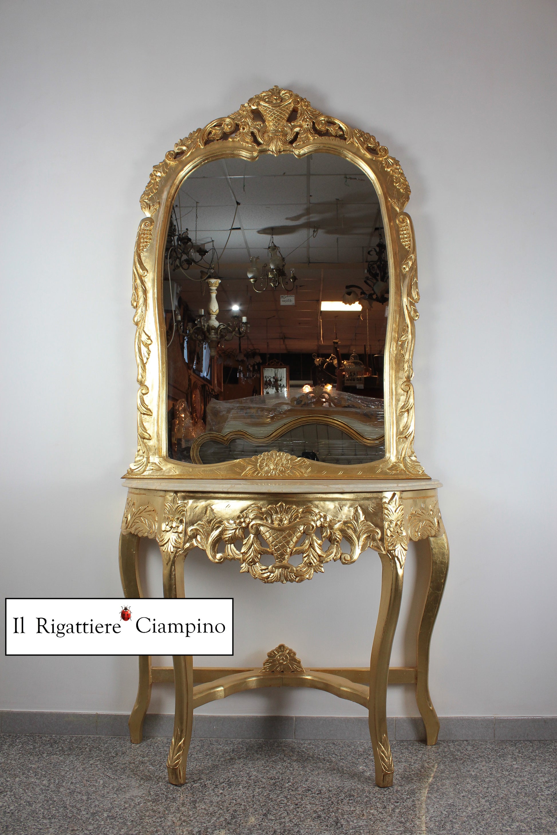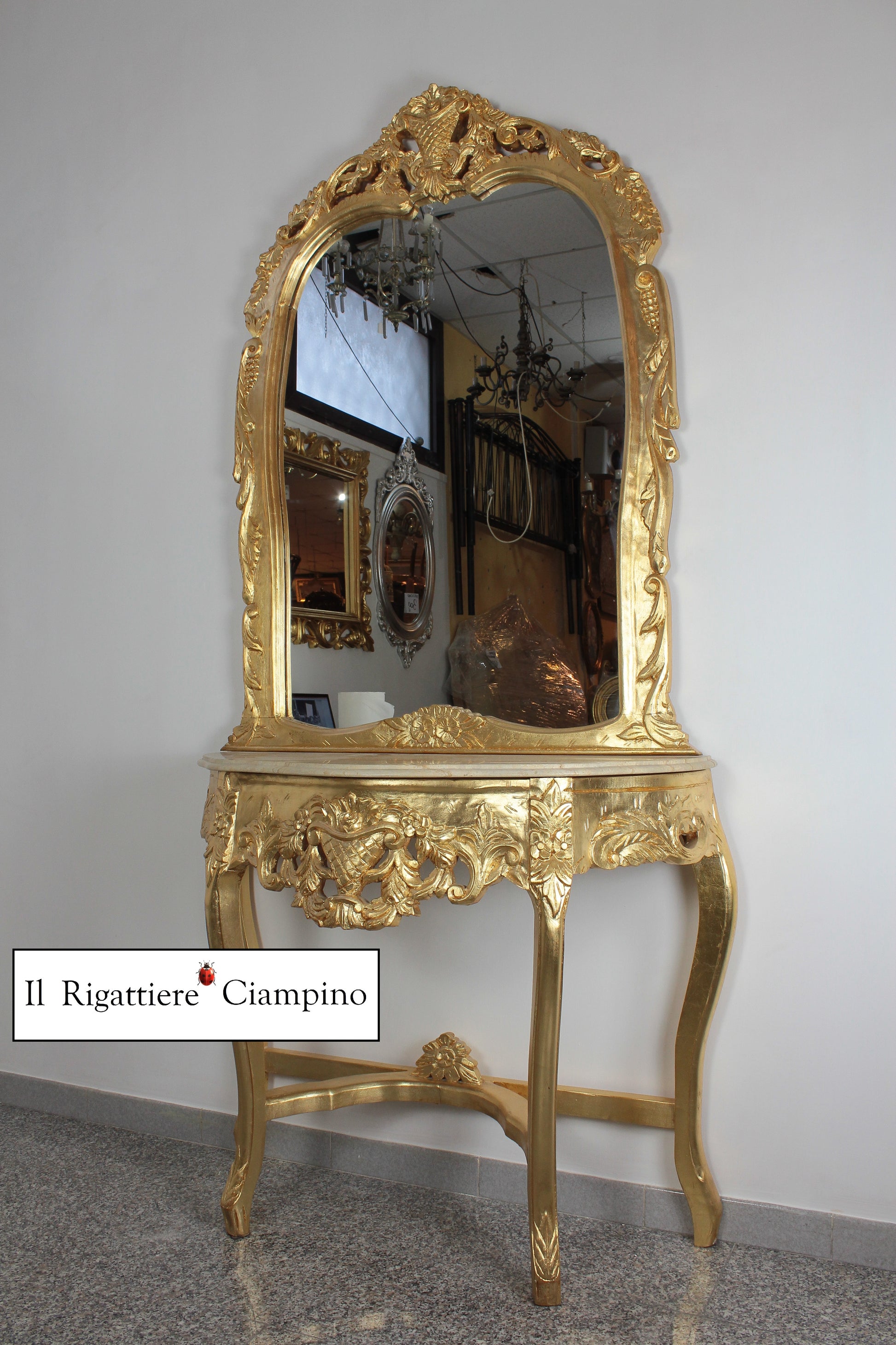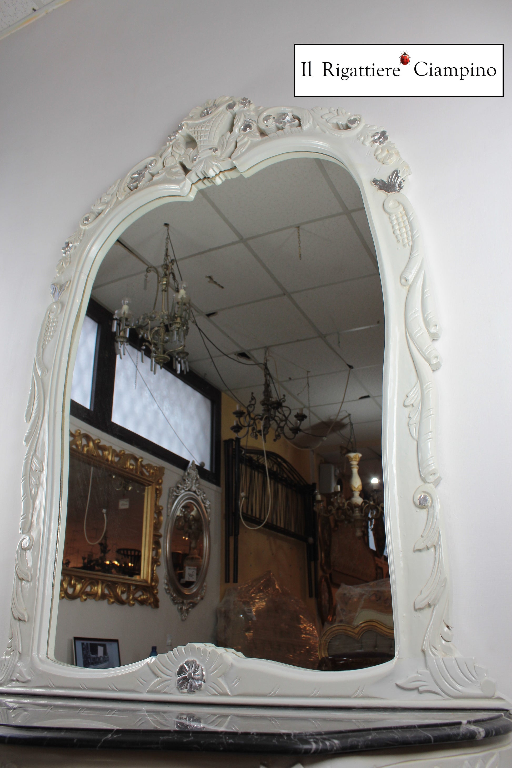 Il Rigattiere Ciampino propone una bellissima consolle di colore bianco in stile barocco, composta da 2 pezzi, con piano in marmo nero. Per donare lucentezza e maestosità alla tua camera, al tuo negozio o al tuo studio.