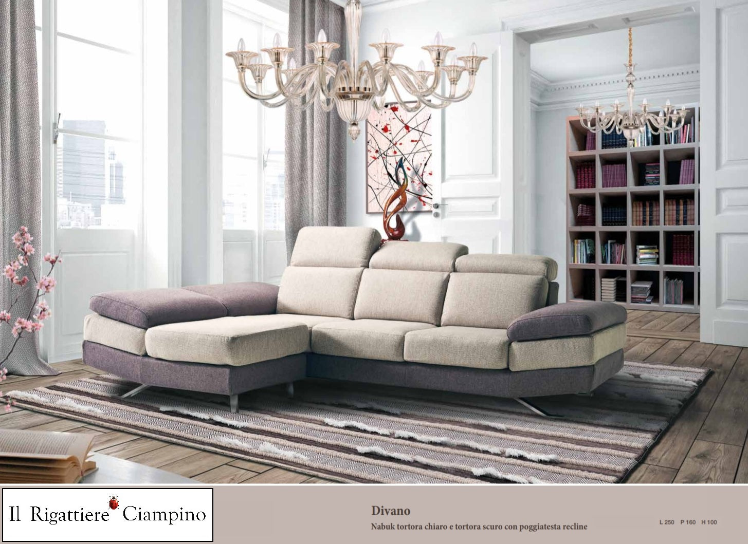 Il Rigattiere Ciampino propone uno splendido divano angolare con isola, in nabuk di colore tortora chiaro e tortora scuro, comfort poggiatesta recline, per la sua collezione divani 2023!