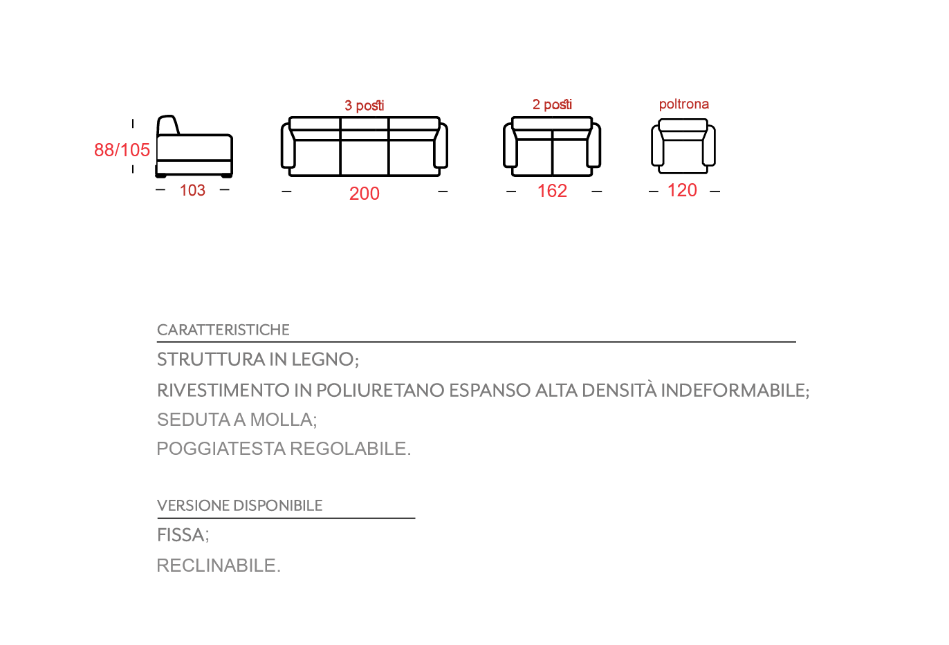 - Imbottitura in poliuretano espanso ad alta densità indeformabile
