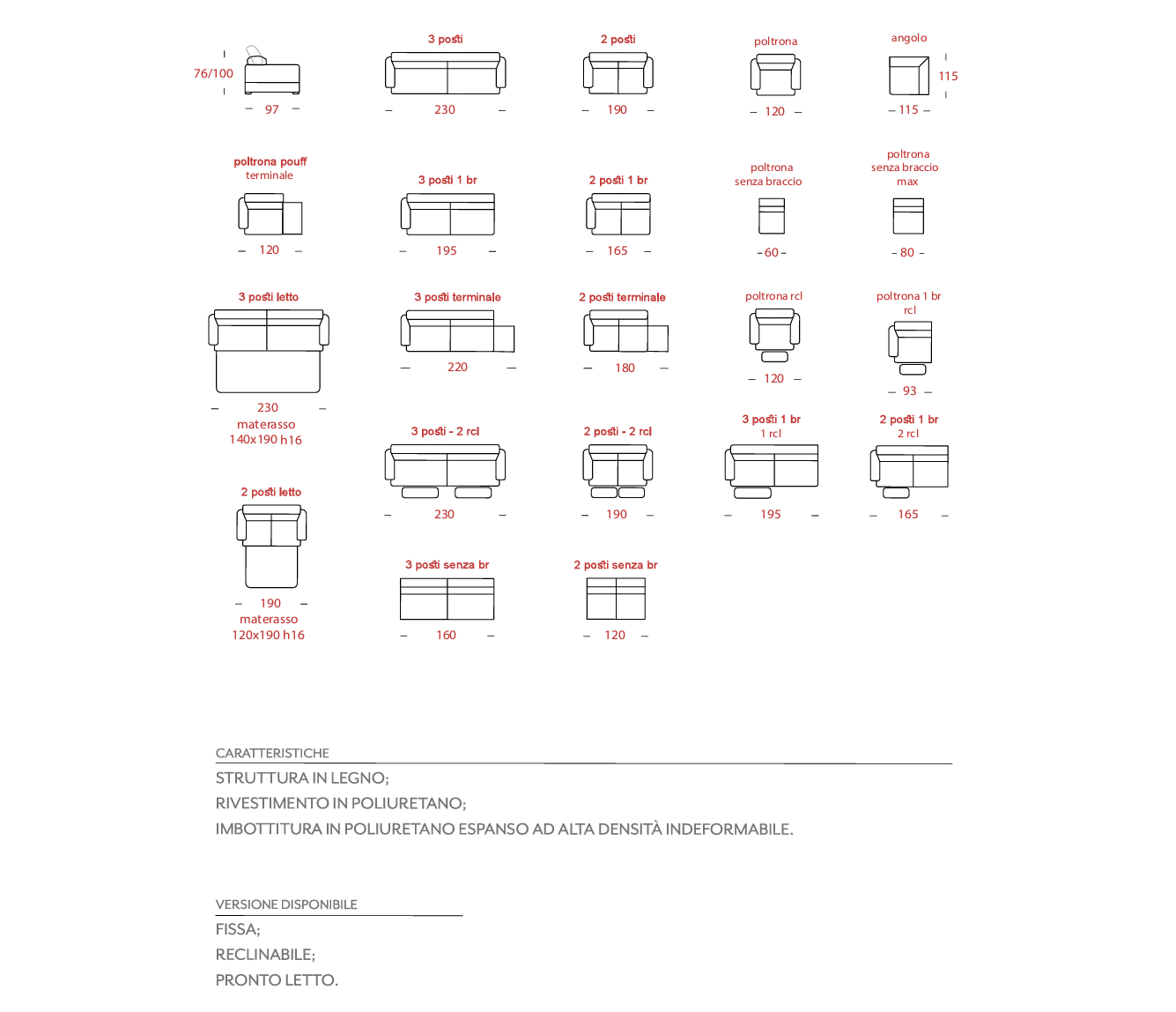 - Imbottitura in poliuretano espanso ad alta densità indeformabile