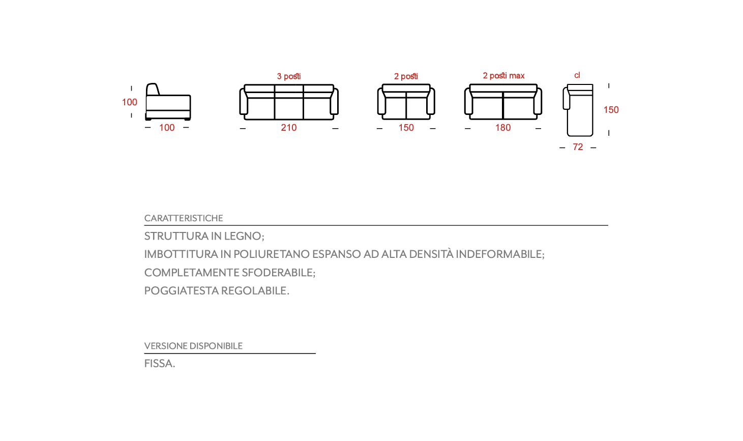 - Imbottitura in poliuretano espanso ad alta densità indeformabile
