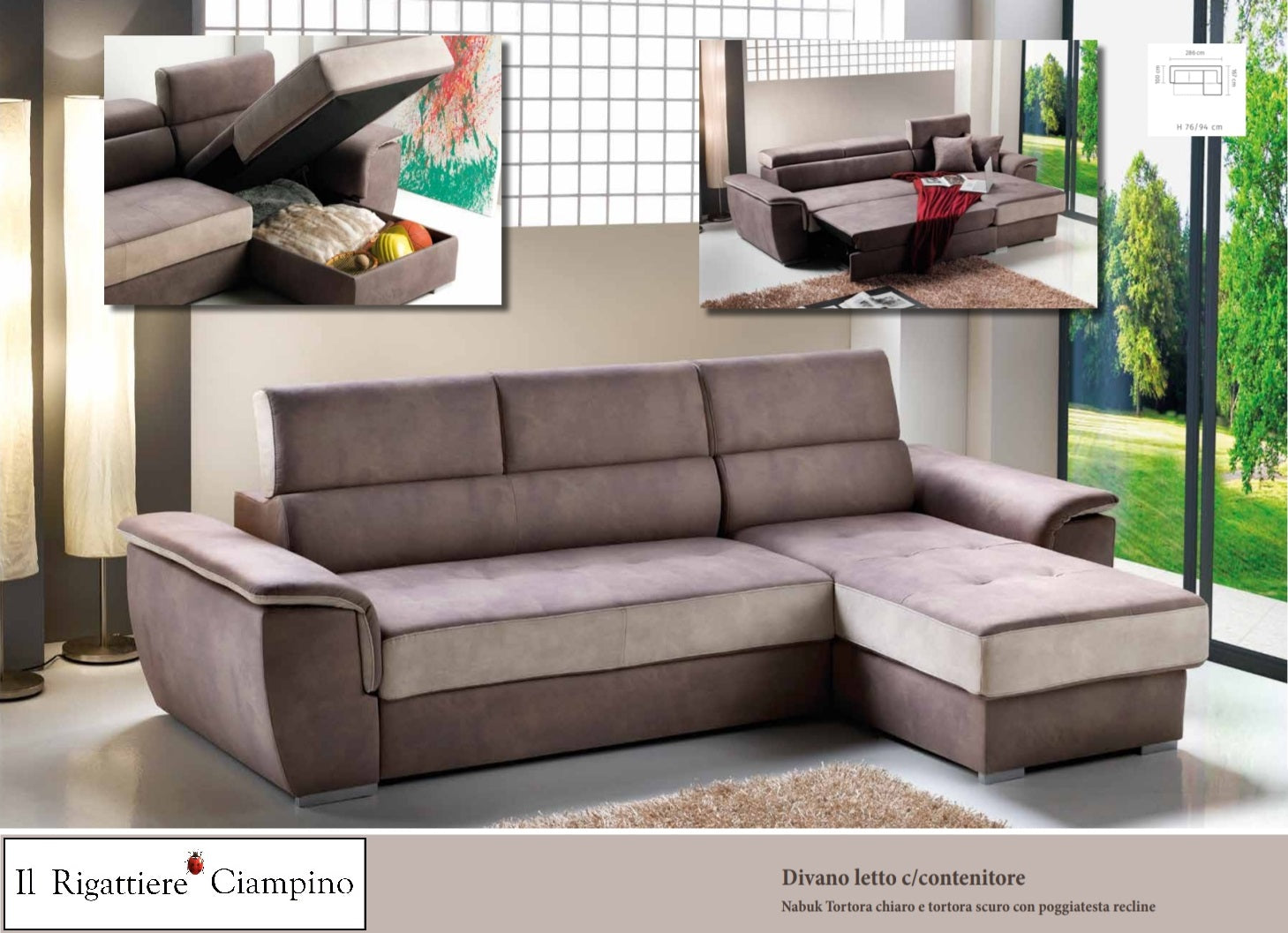 Divano letto contenitore in nabuk tortora