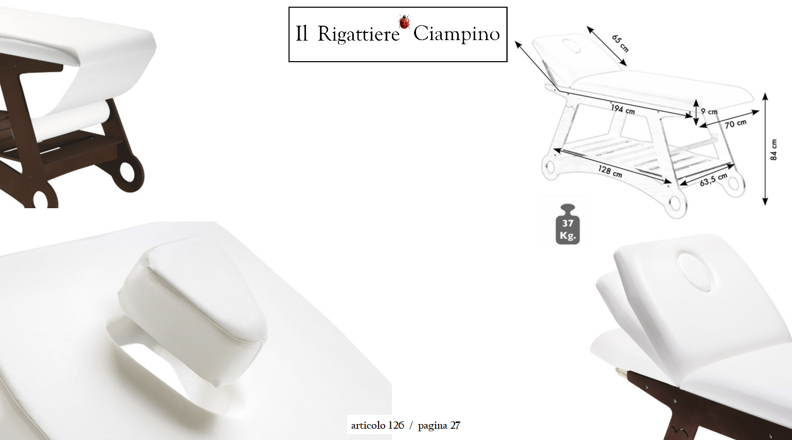Il Rigattiere Ciampino presenta il suo Lettino professionale 2 zone con struttura in legno multistrato di betulla, di colore wengé o bianca. La struttura del lettino è realizzata con una tintura ad acqua.