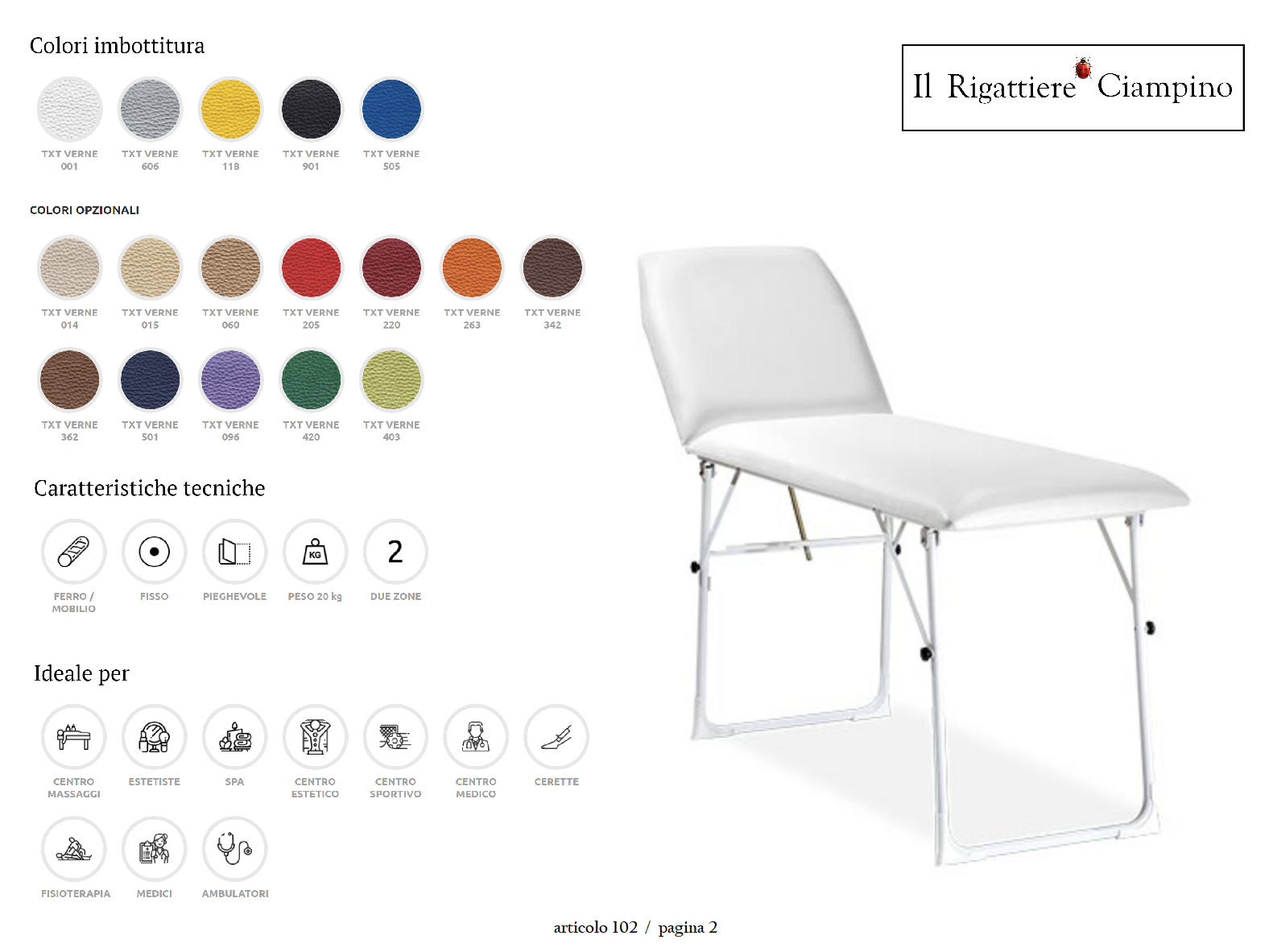 Lettino massaggi pieghevole 2 zone professionale