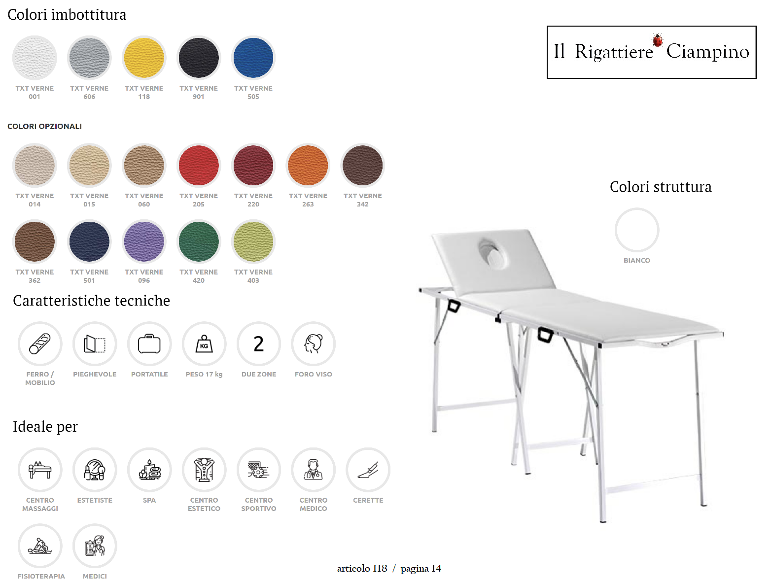 L’intera struttura del lettino ha una portata massima di 310 Kg, è dotata di foro viso e piedini regolabili e può essere lavato e sanificato, con i comuni prodotti di pulizia presenti in commercio. I nostri lettini sono rigorosamente Made in Italy certificati!