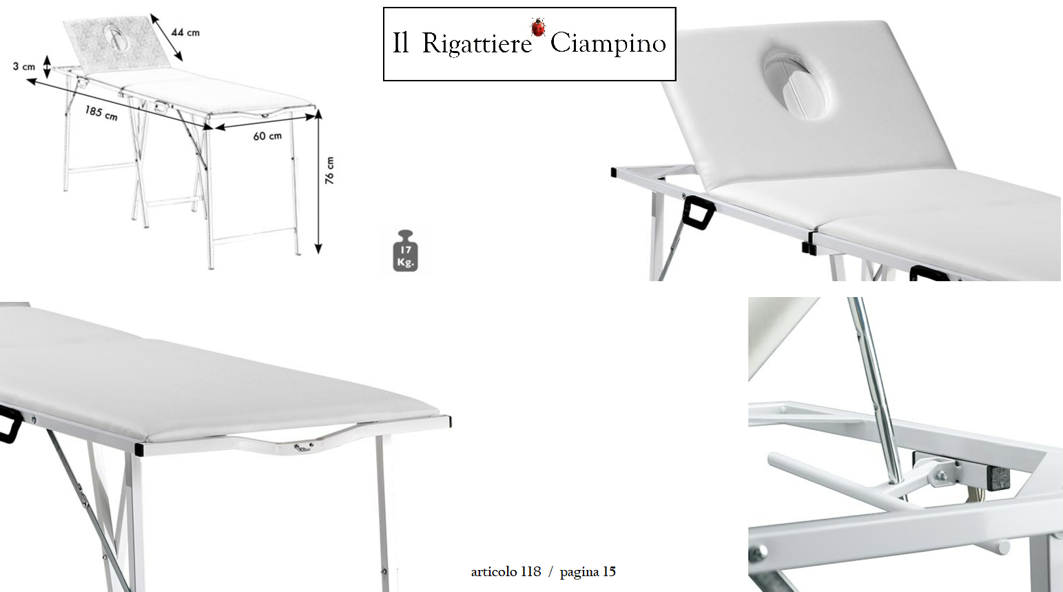 Lettino pieghevole con testata regolabile e foro viso