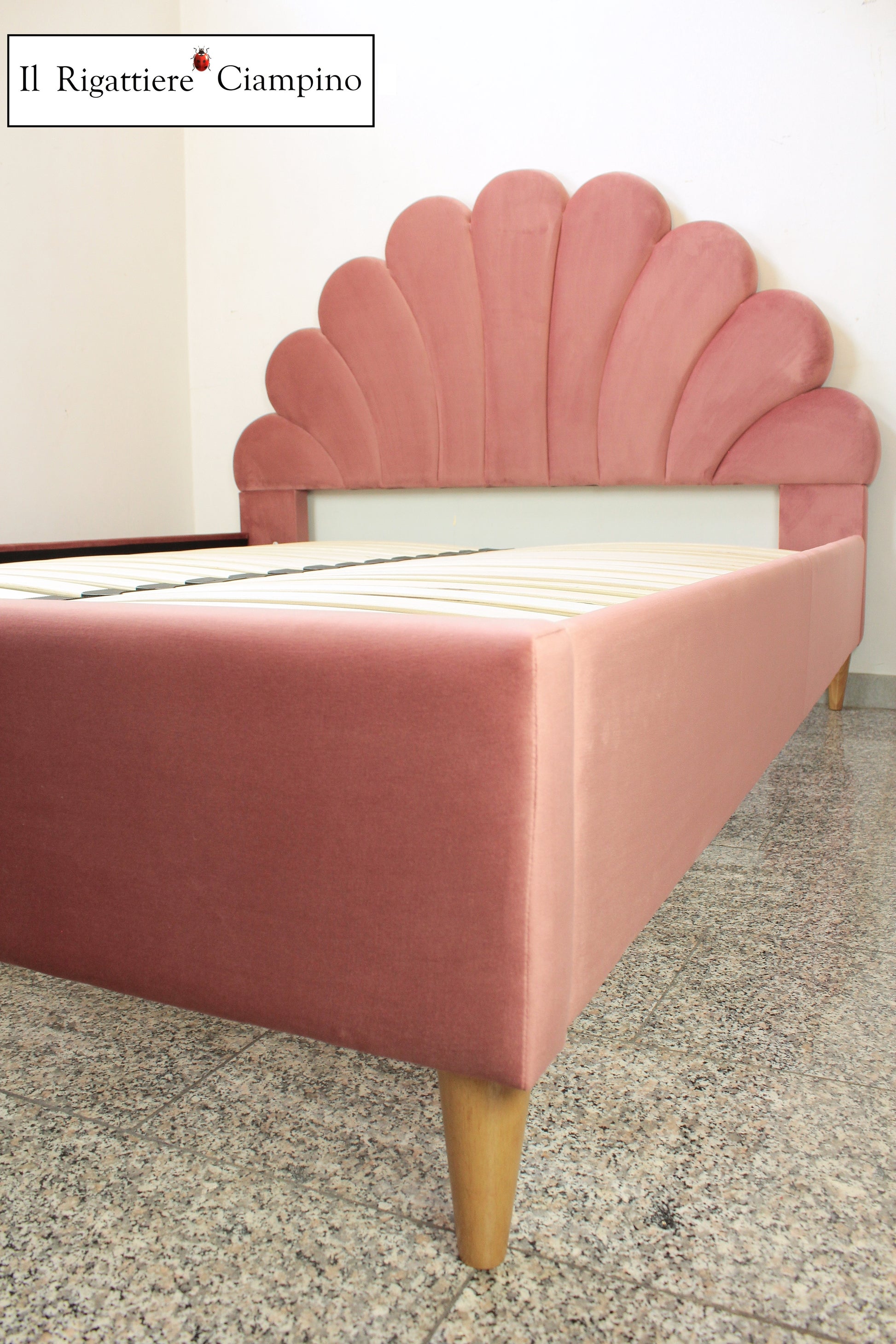 Il Rigattiere Ciampino propone un magnifico letto modello Perla, luminoso e d'impatto. Questo letto è doghettato e predisposto per il materass0 standard! Completamente imbottito! Rivestimento in velluto rosa, su tutta la struttura, schienale, pediera e laterali. Effetto conchiglia.