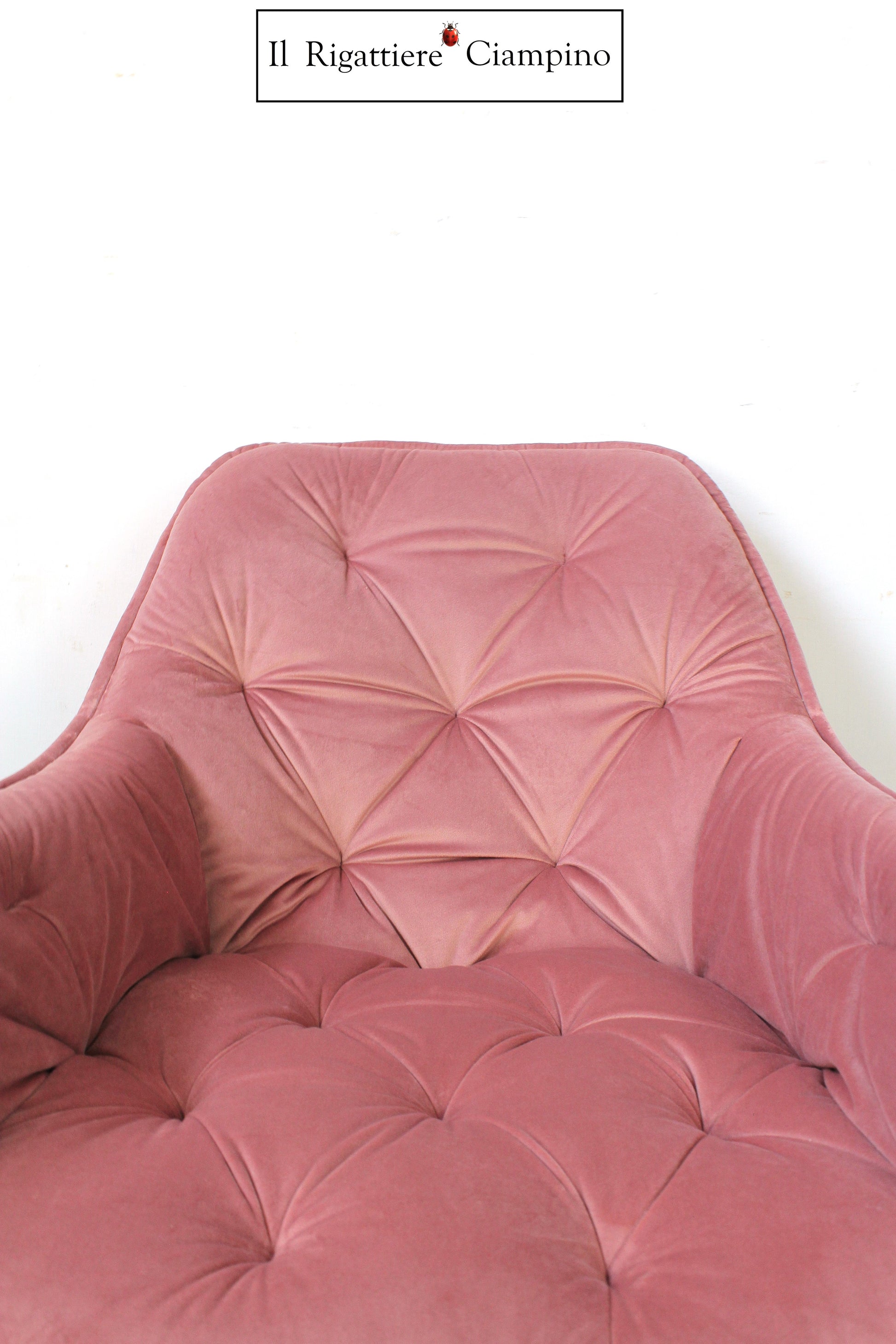 Il Rigattiere Ciampino propone un bellissima poltrona, imbottita e rivestita con velluto rosa. Questa poltroncina è dotata di meccanismo idraulico e girevole, con gamba in metallo inossidabile. La poltrona dona brillantezza e luminosità all'ambiente, grazie al velluto.