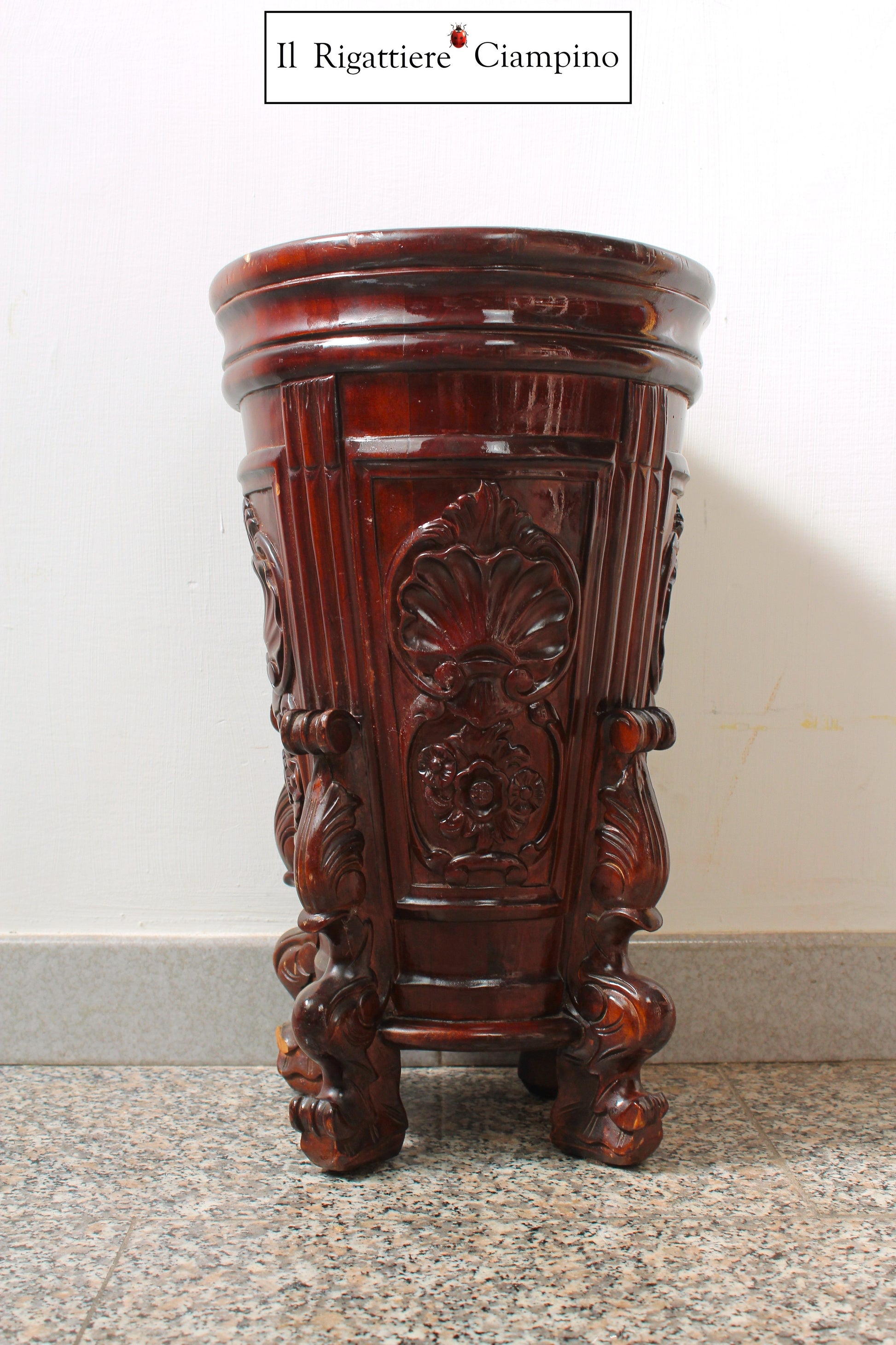 Portaombrelli in vero legno mogano massello. 2 disponibili.