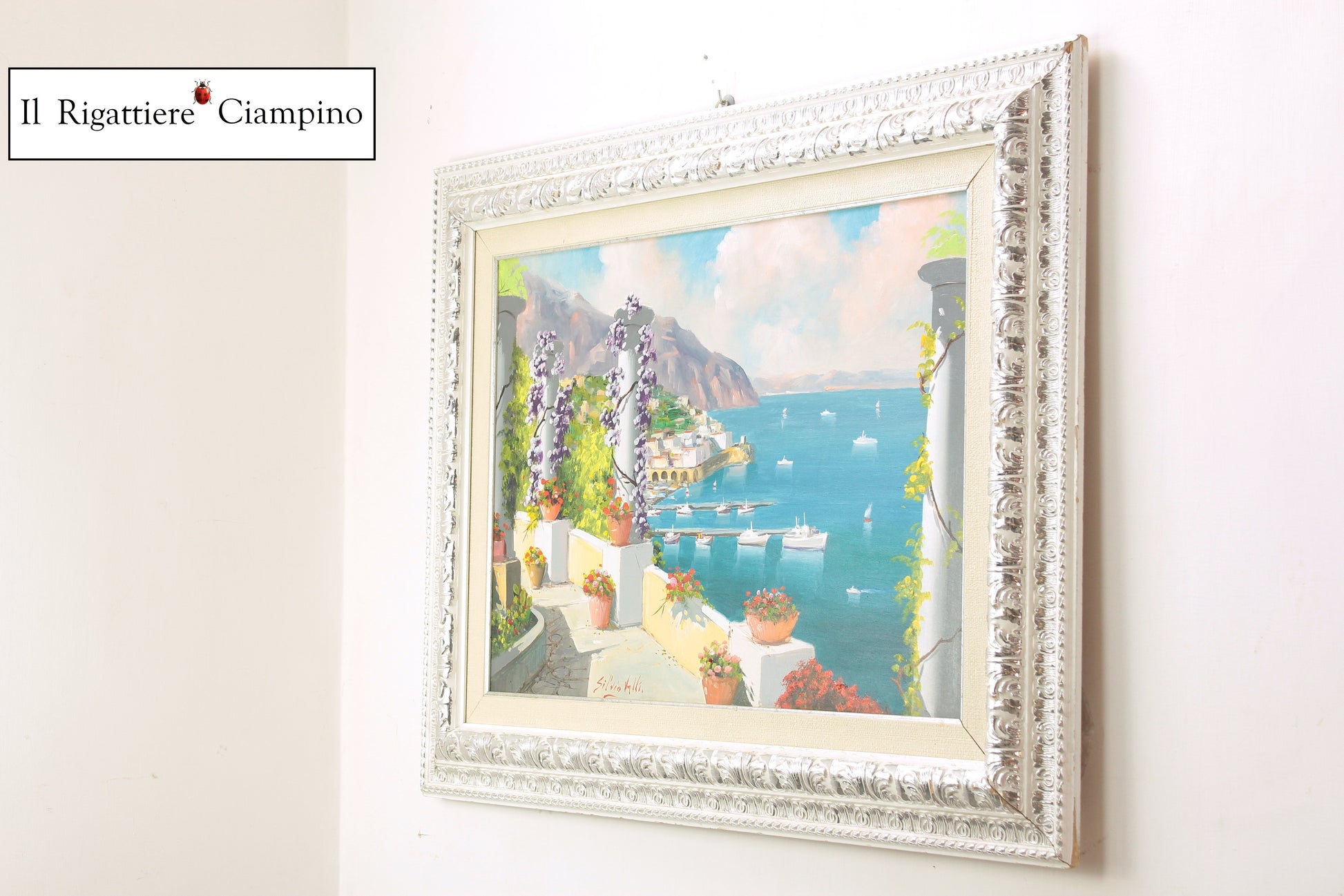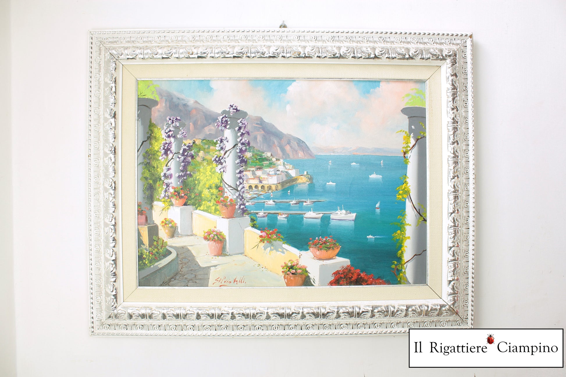 Il Rigattiere Ciampino propone uno splendido quadro dell'artista Silvio Valli. Tela originale. Paesaggio marittimo campano.