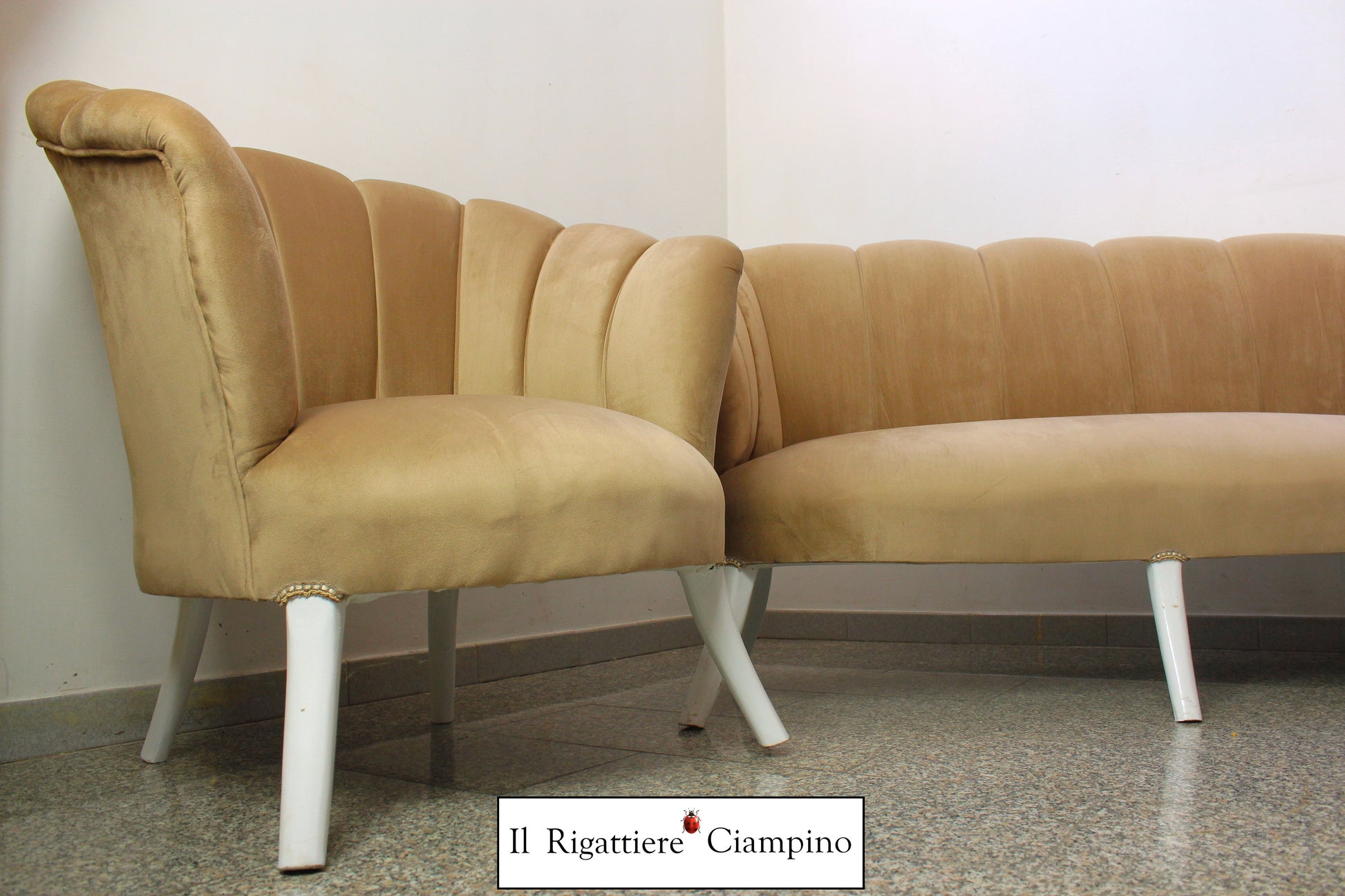 Il Rigattiere Ciampino propone un fantastico set salotto in velluto di colore beige, composto da n°2 poltrone e n°1 divano per due. Le gambe in legno bianco laccato semiopaco conferiscono al set un tocco di eleganza discreta e un'atmosfera calda e accogliente. Il velluto beige, noto per la sua morbidezza al tatto e la sua luminosità, aggiunge un'aura di lusso e comfort senza pari.