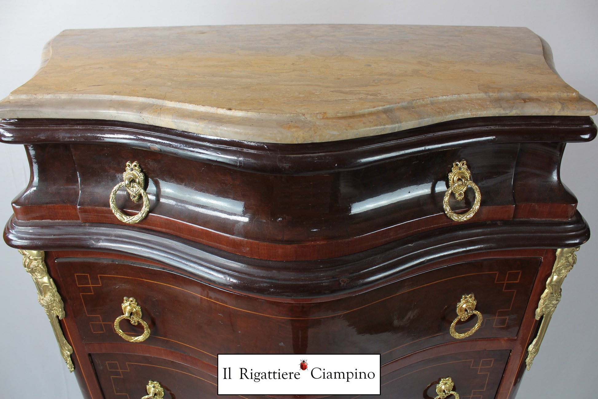 Settimino in stile francese in radica di noce piano in marmo