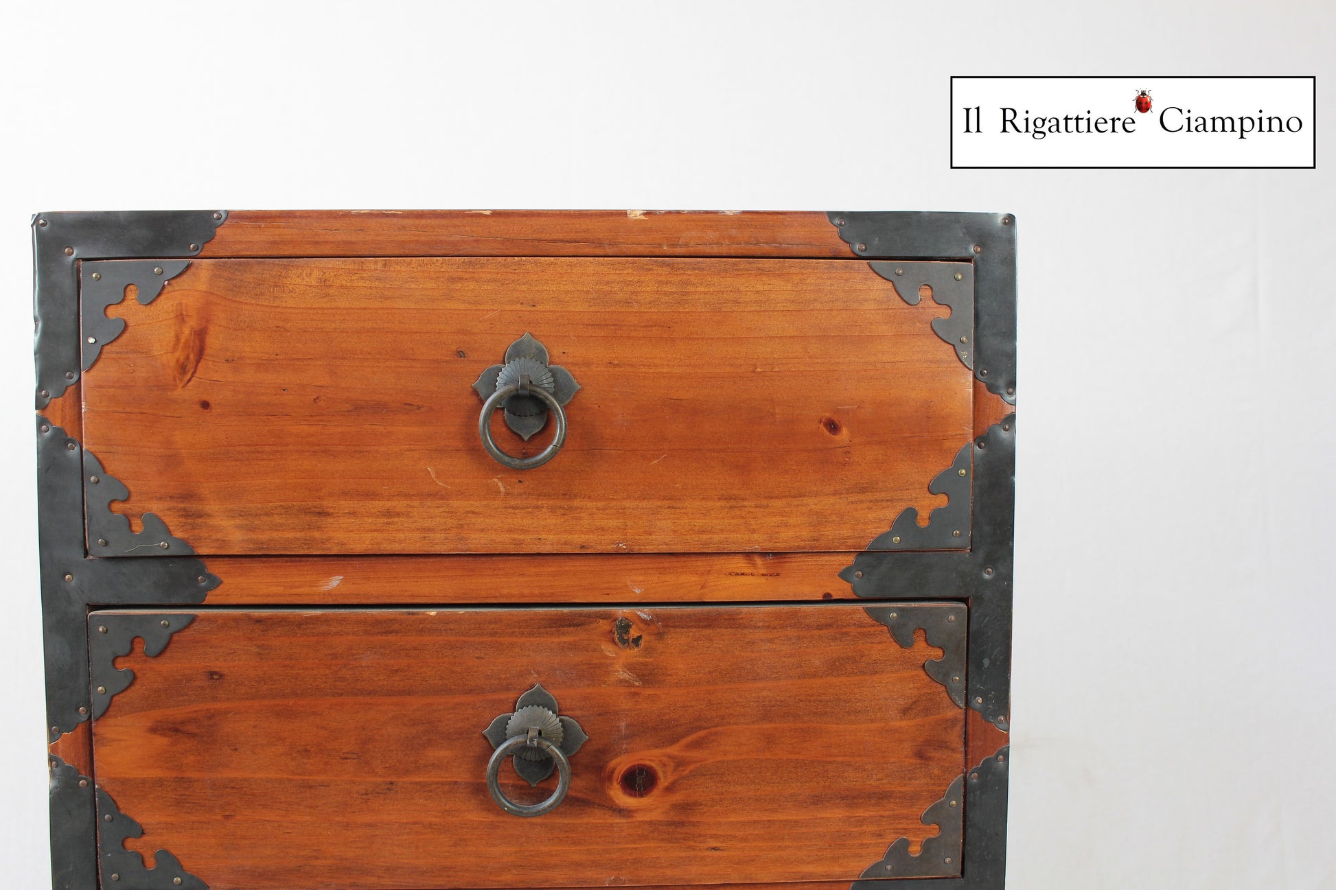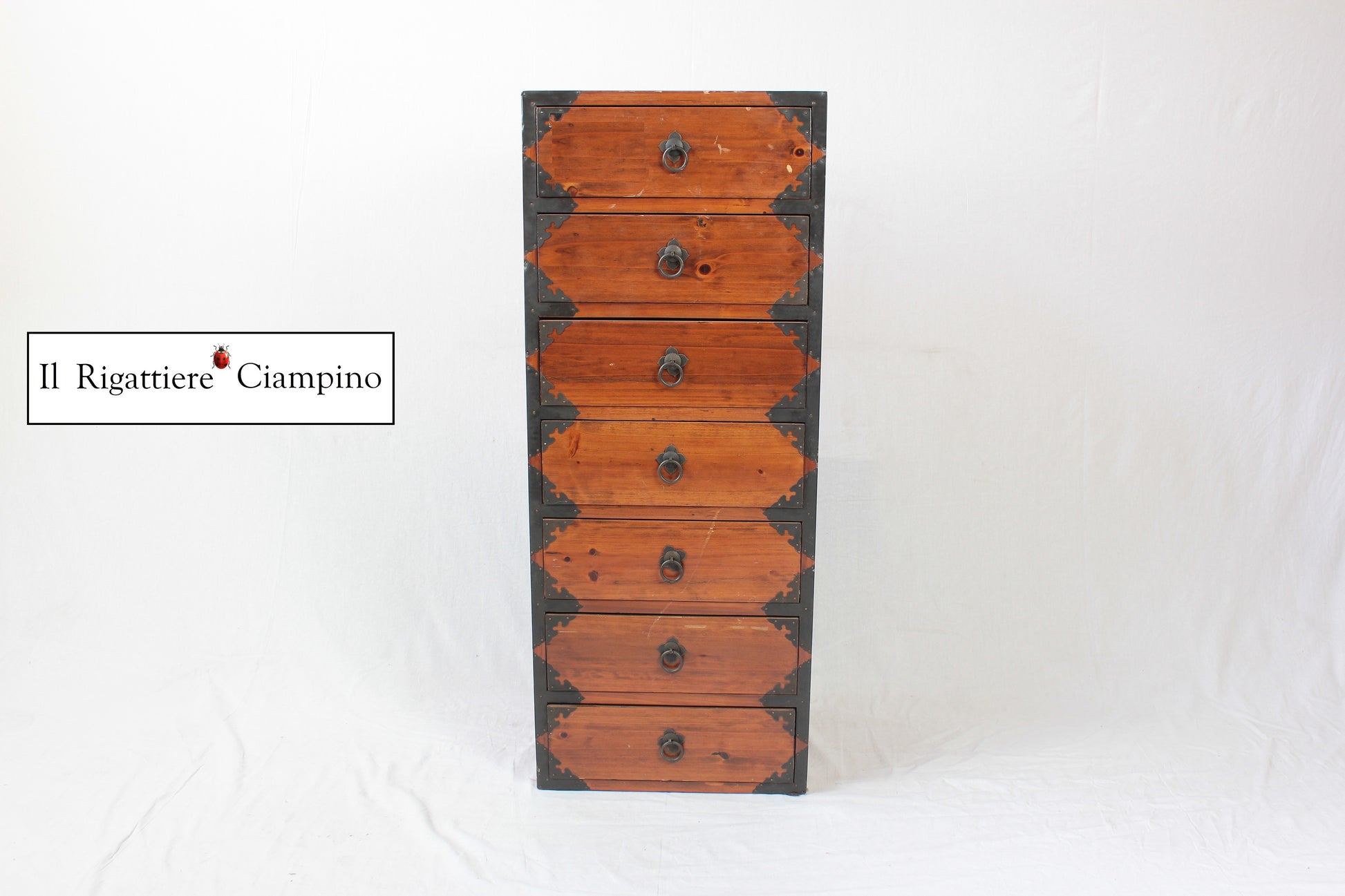 Il Rigattiere Ciampino propone un settimino in stile rustico, in legno, con rifiniture in metallo, dotato di 7 cassetti, alto e comodo per riporre gli oggetti da non tenere in vista. Pomelli in ferro.