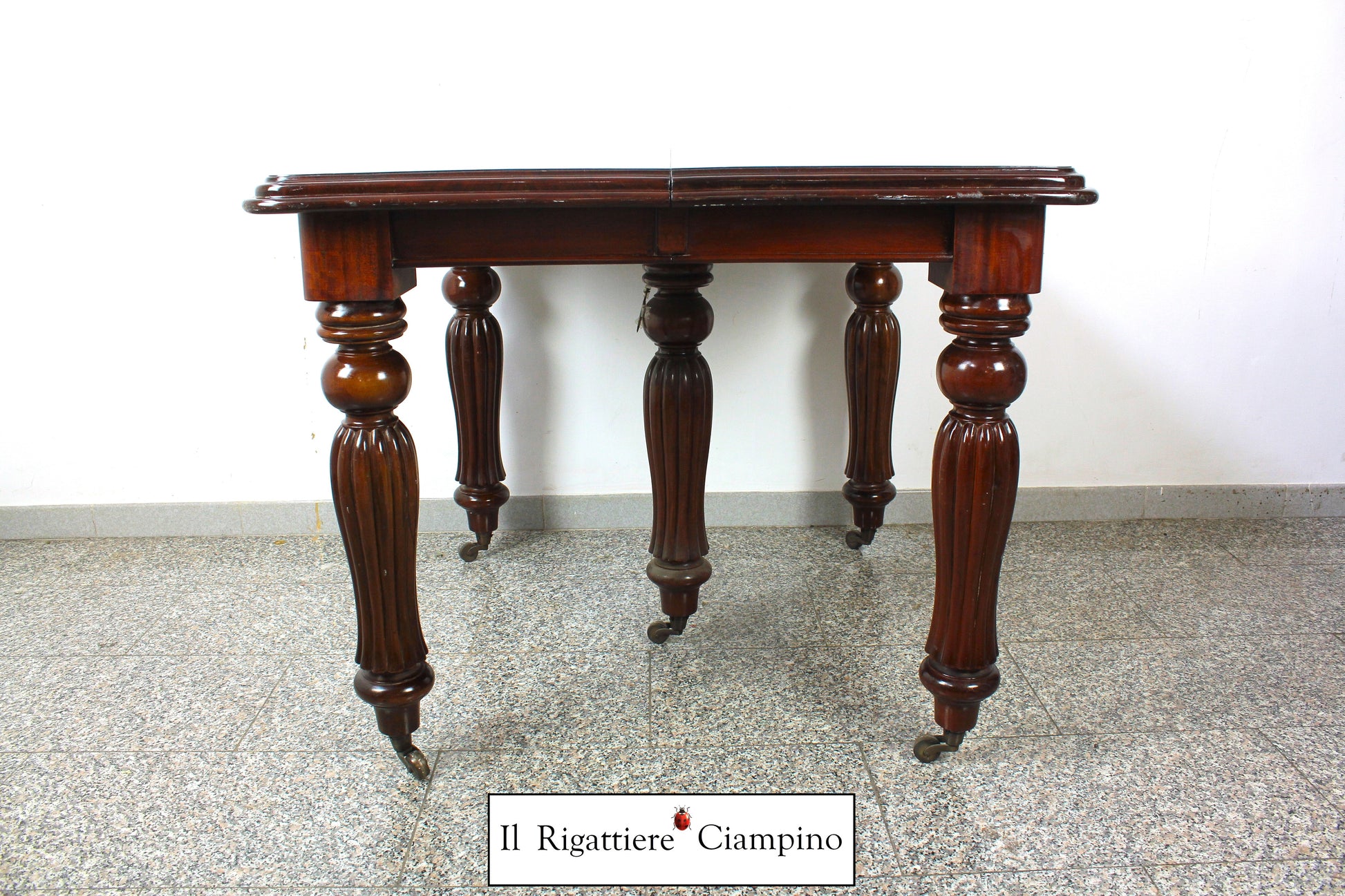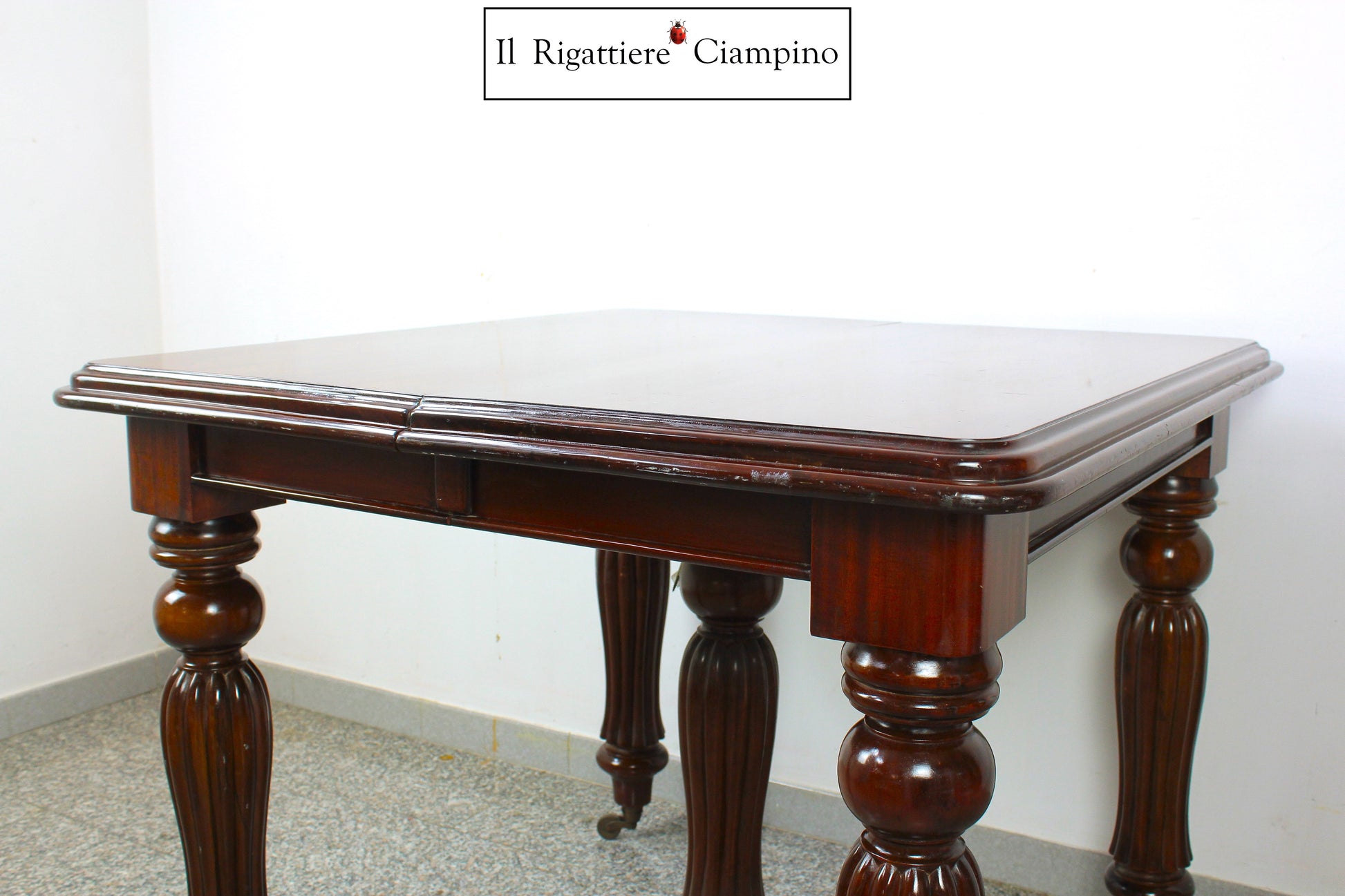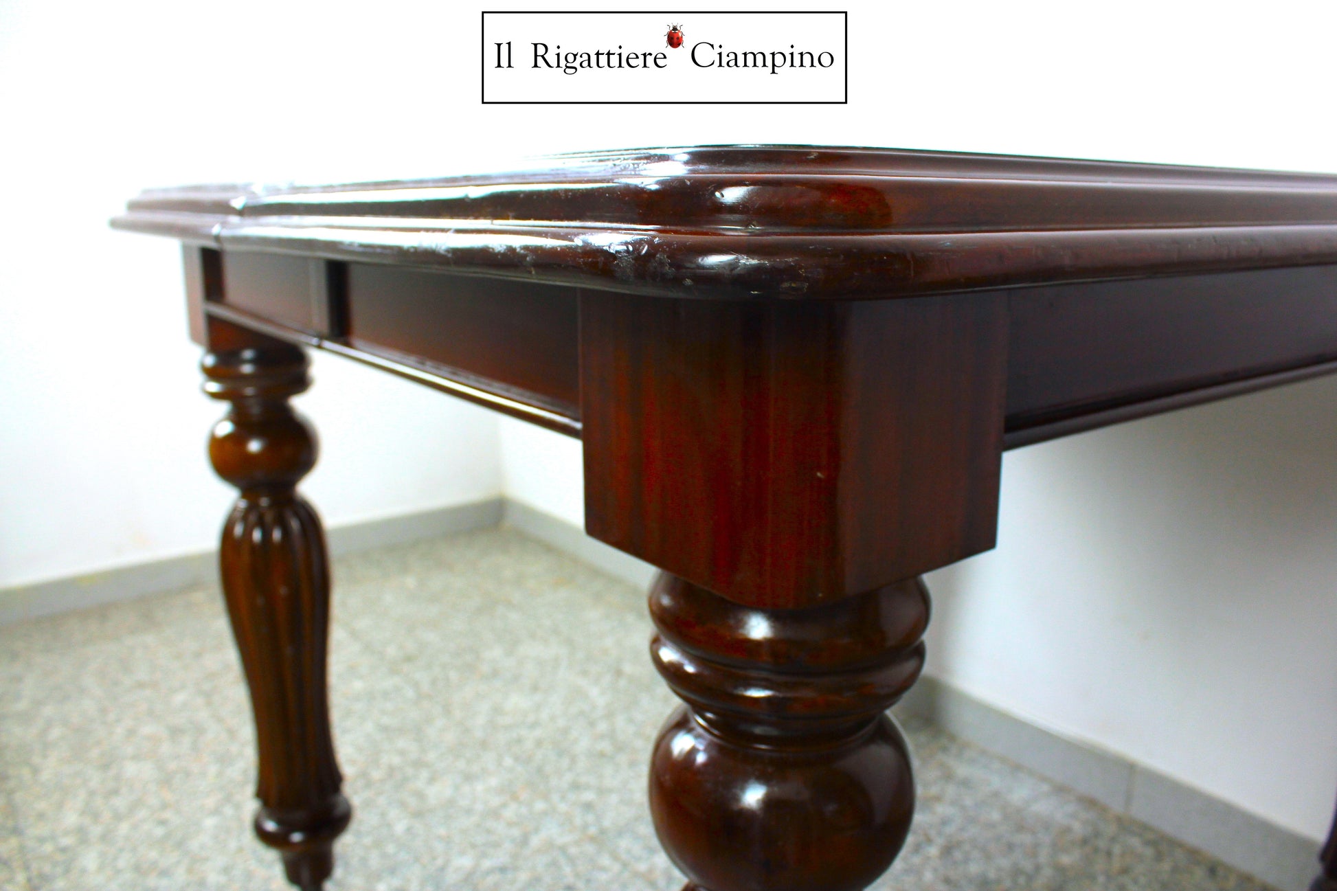 Il Rigattiere Ciampino propone un bellissimo tavolo in legno mogano massello, con 5 gambe, di colore marrone. Questo tavolo dispone di quattro allunghe da 50 cm, per aggiungere fino a 200 cm di larghezza! Un tavolo per ogni occasione, per accogliere fino a 12 persone!
