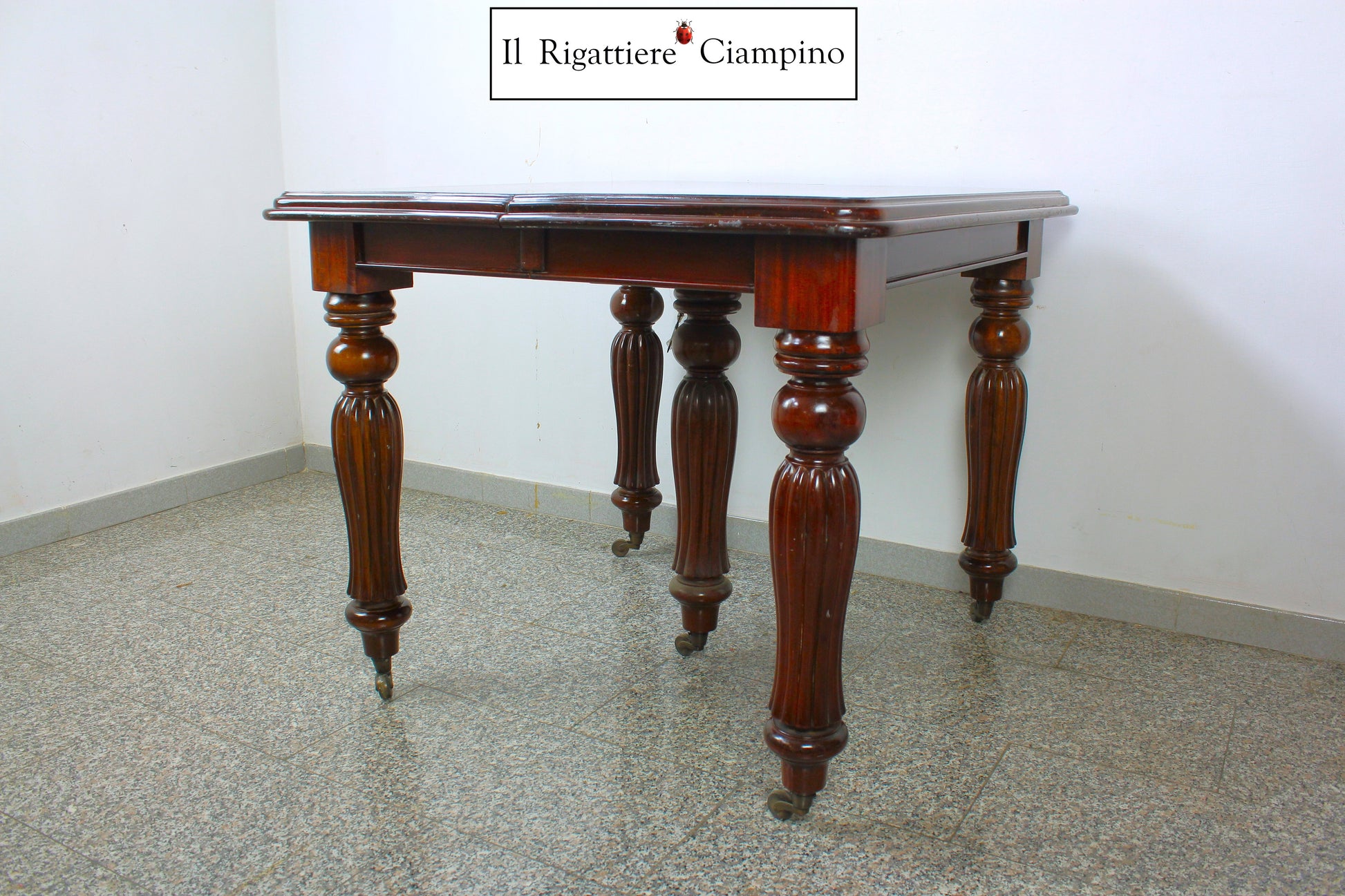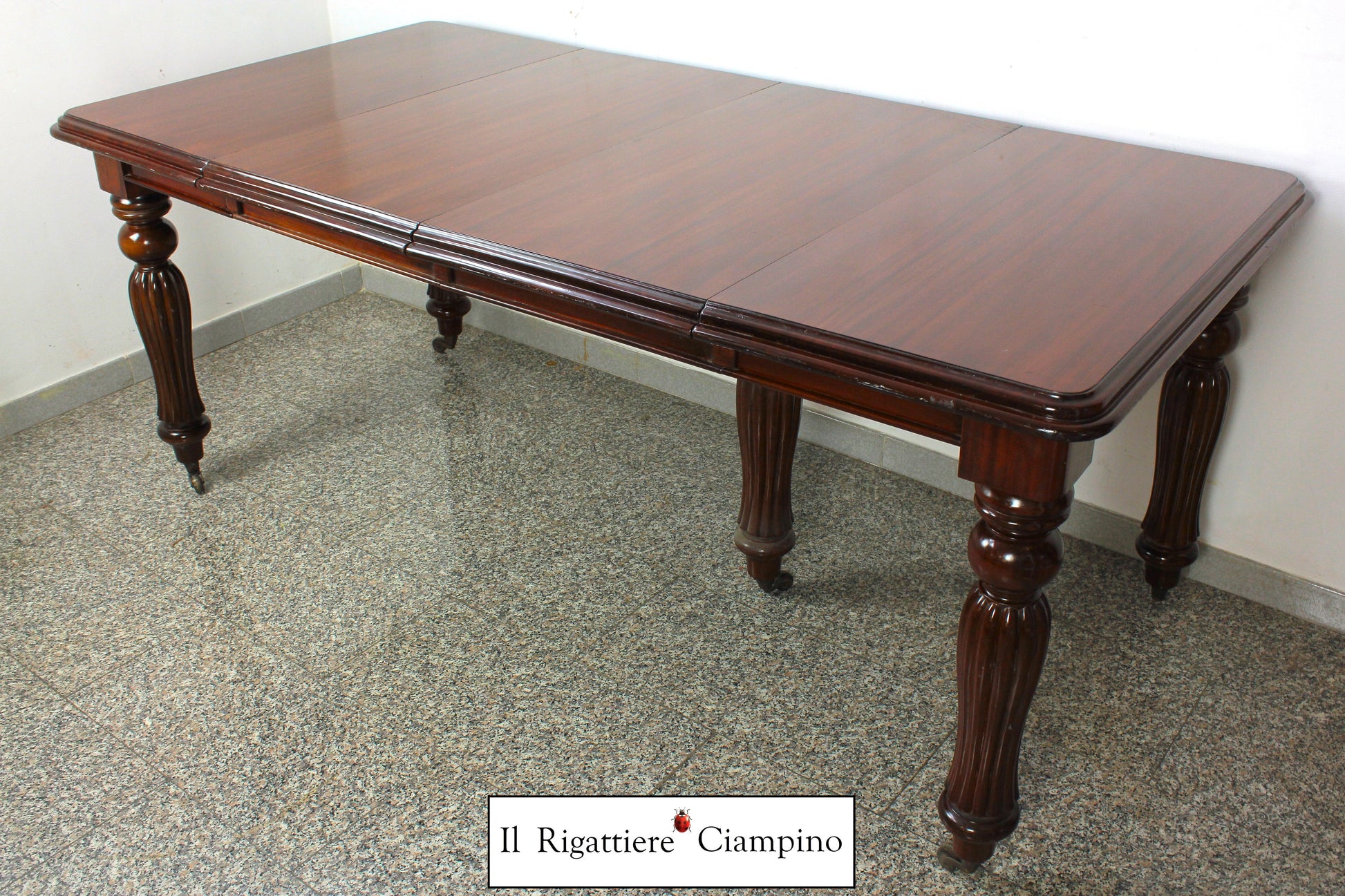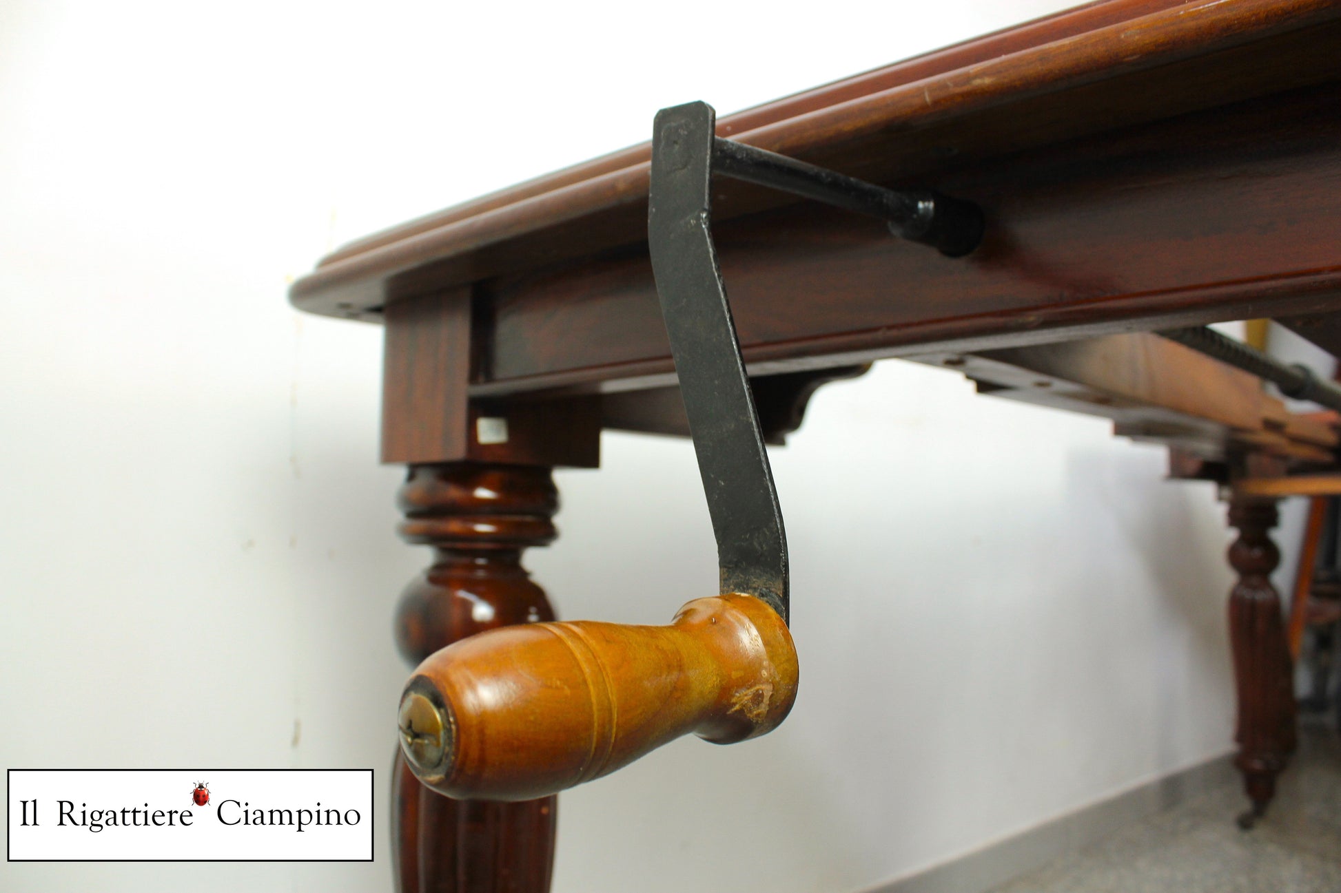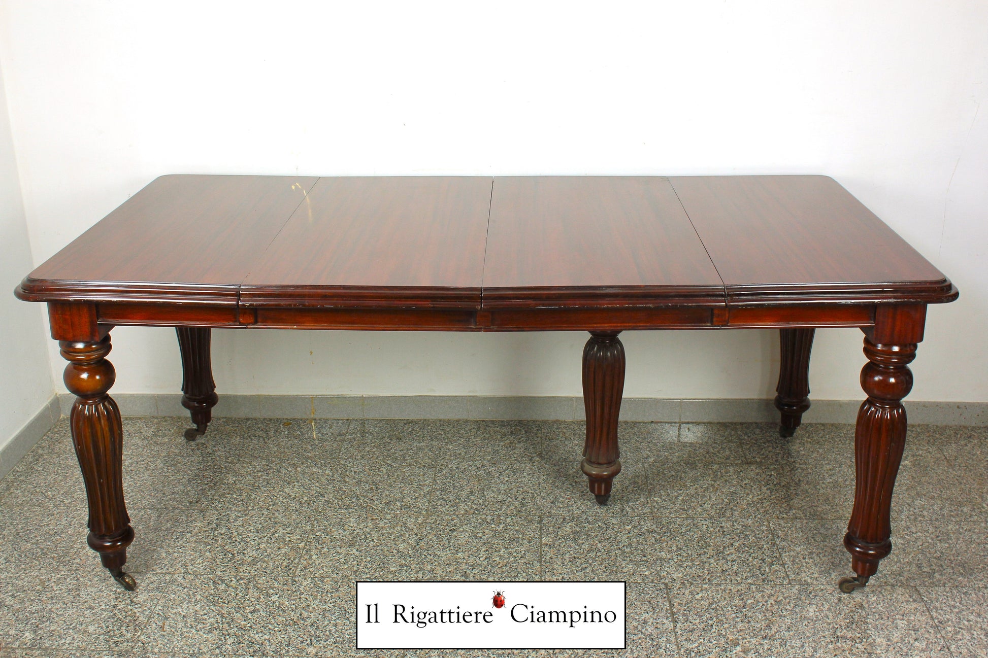 Il Rigattiere Ciampino propone un bellissimo tavolo in legno mogano massello, con 5 gambe, di colore marrone. Questo tavolo dispone di quattro allunghe da 50 cm, per aggiungere fino a 200 cm di larghezza! Un tavolo per ogni occasione, per accogliere fino a 12 persone!