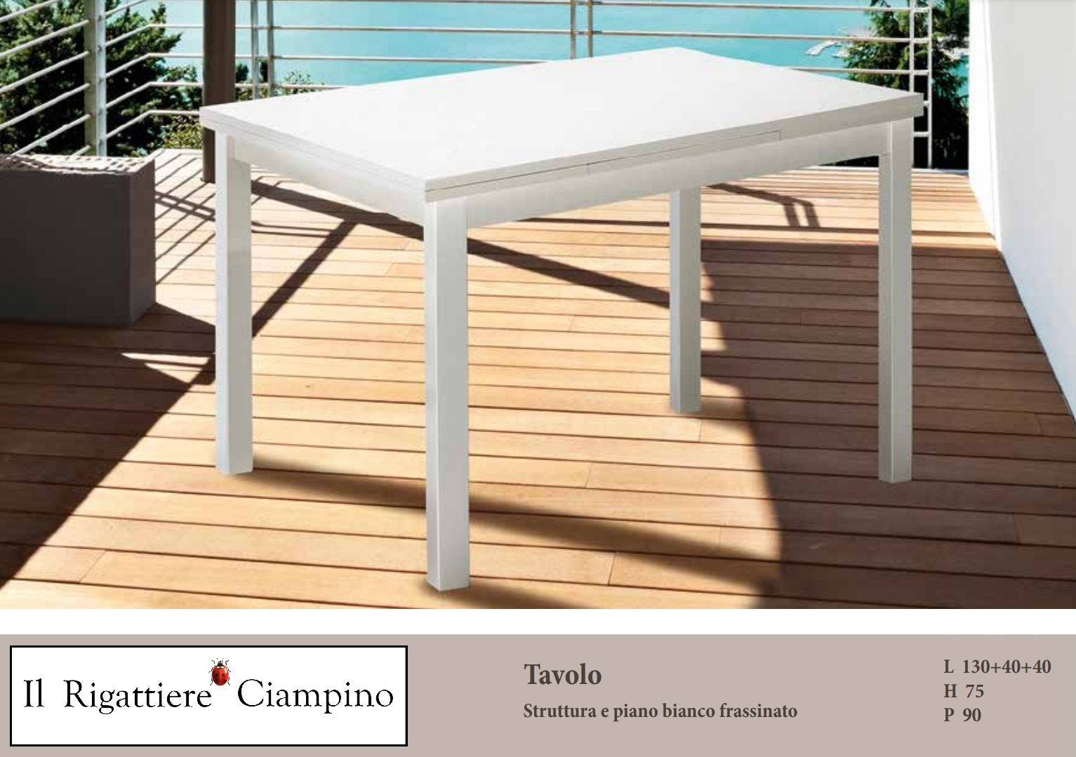 Il Rigattiere Ciampino propone un tavolo allungabile di 80 cm totali, con struttura e piano di colore bianco frassinato.