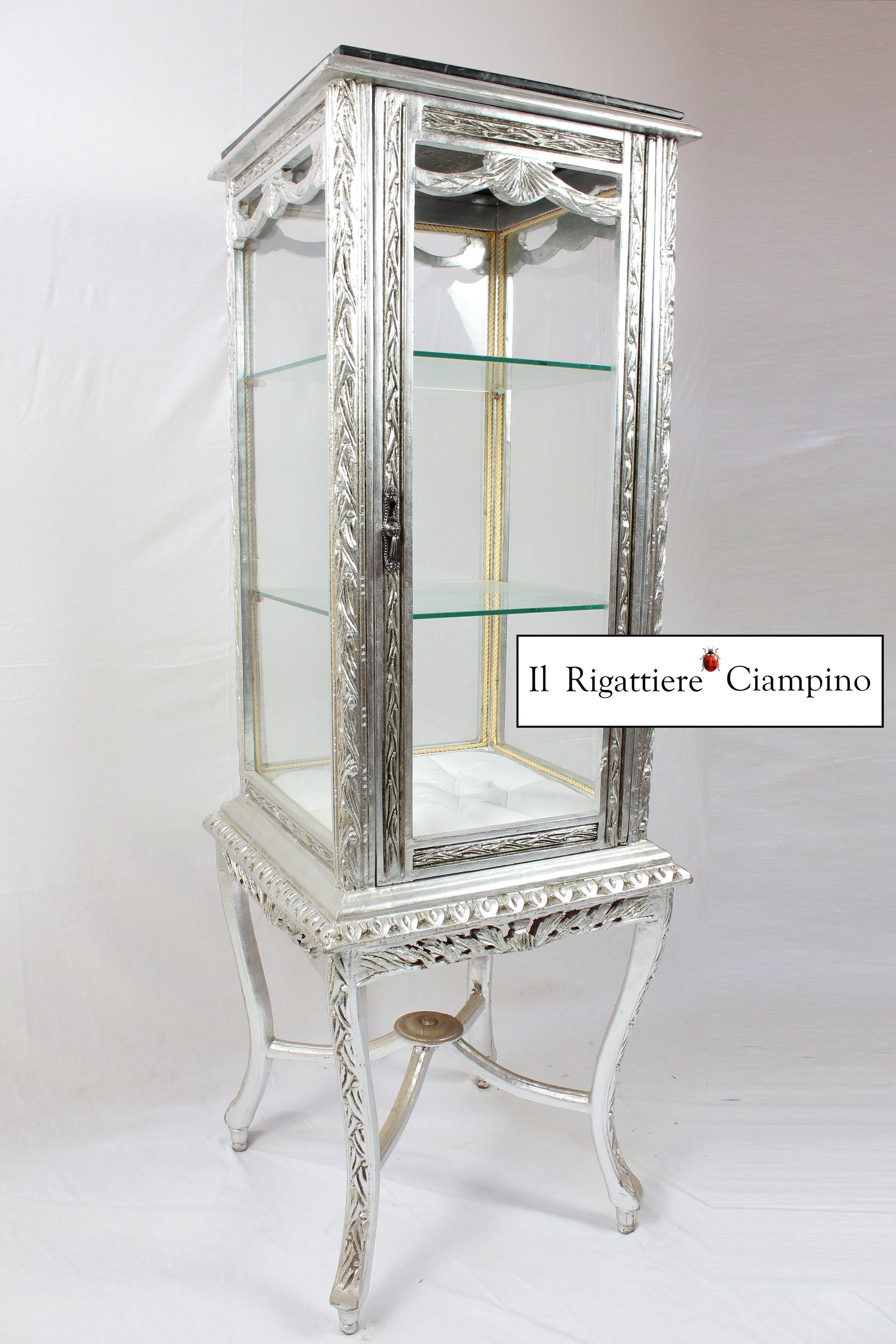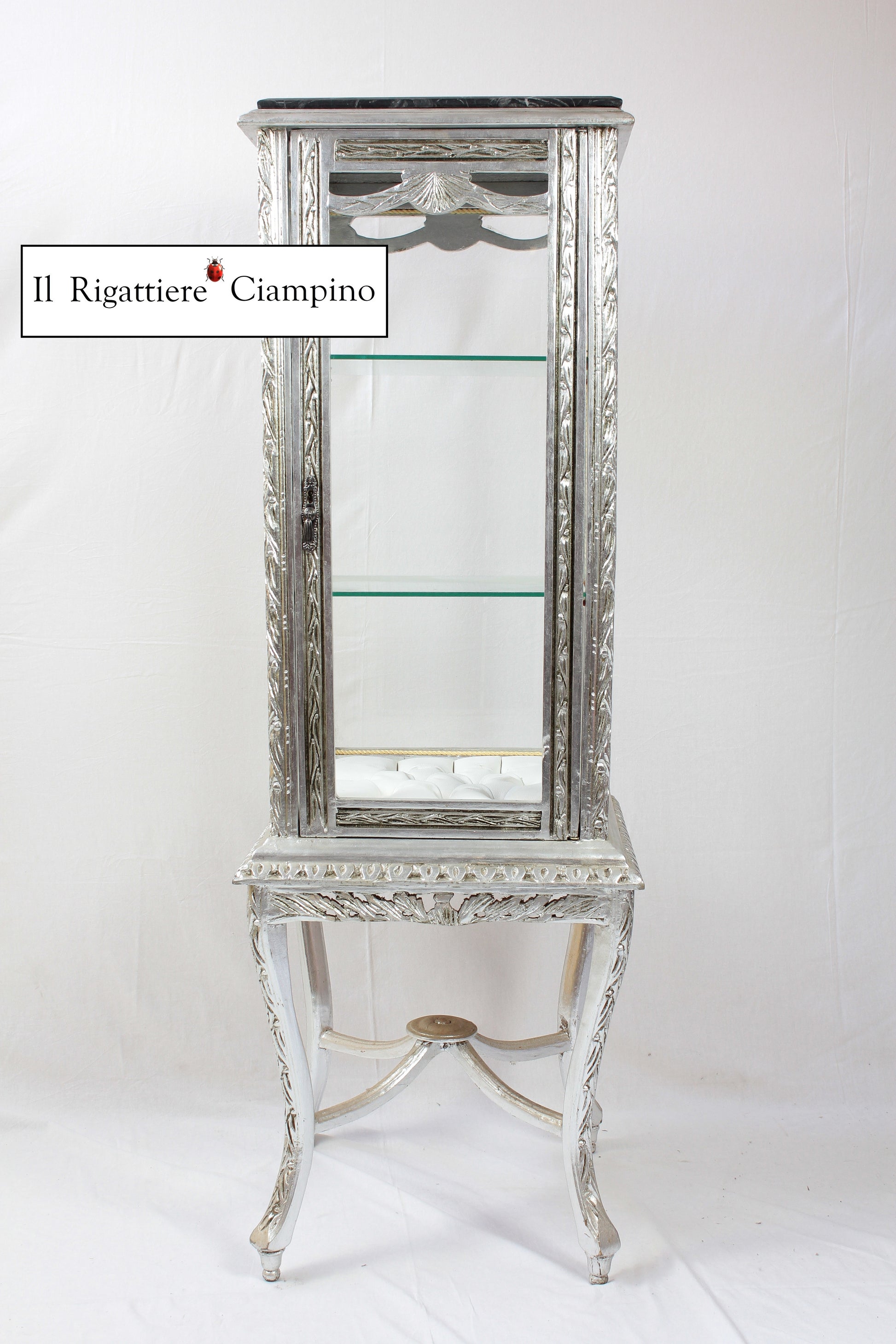 Vetrina Anna in foglia argento e marmo nero