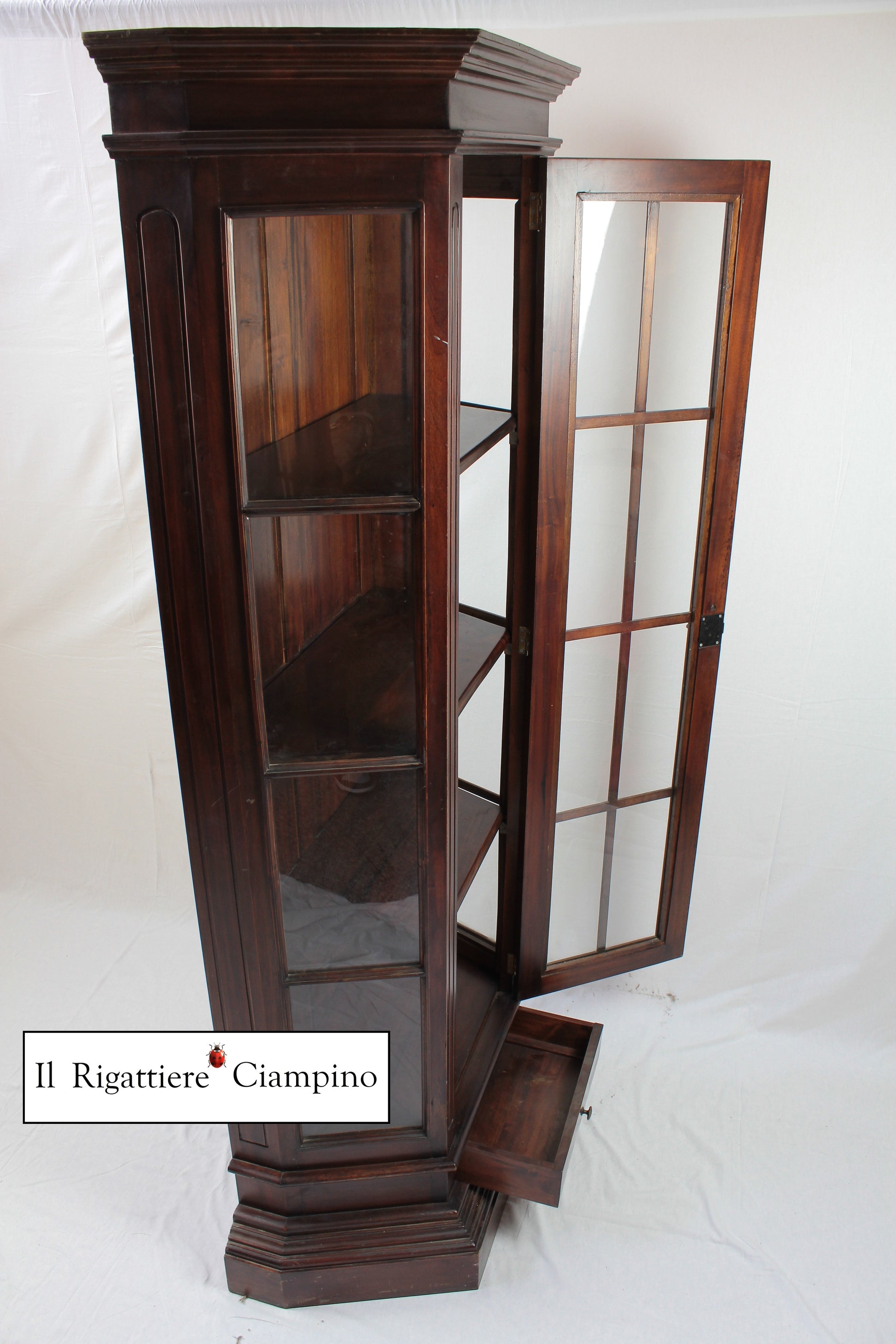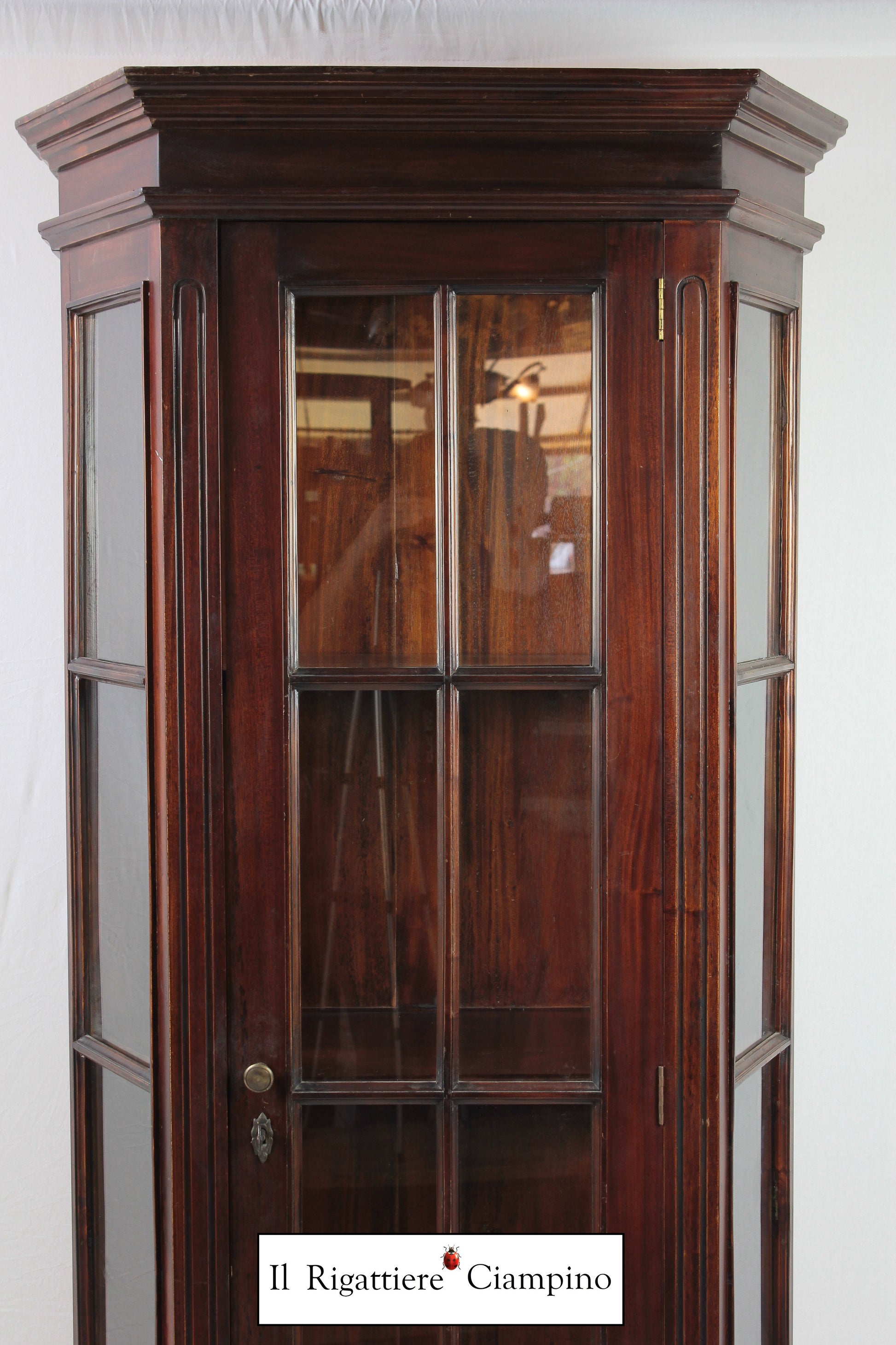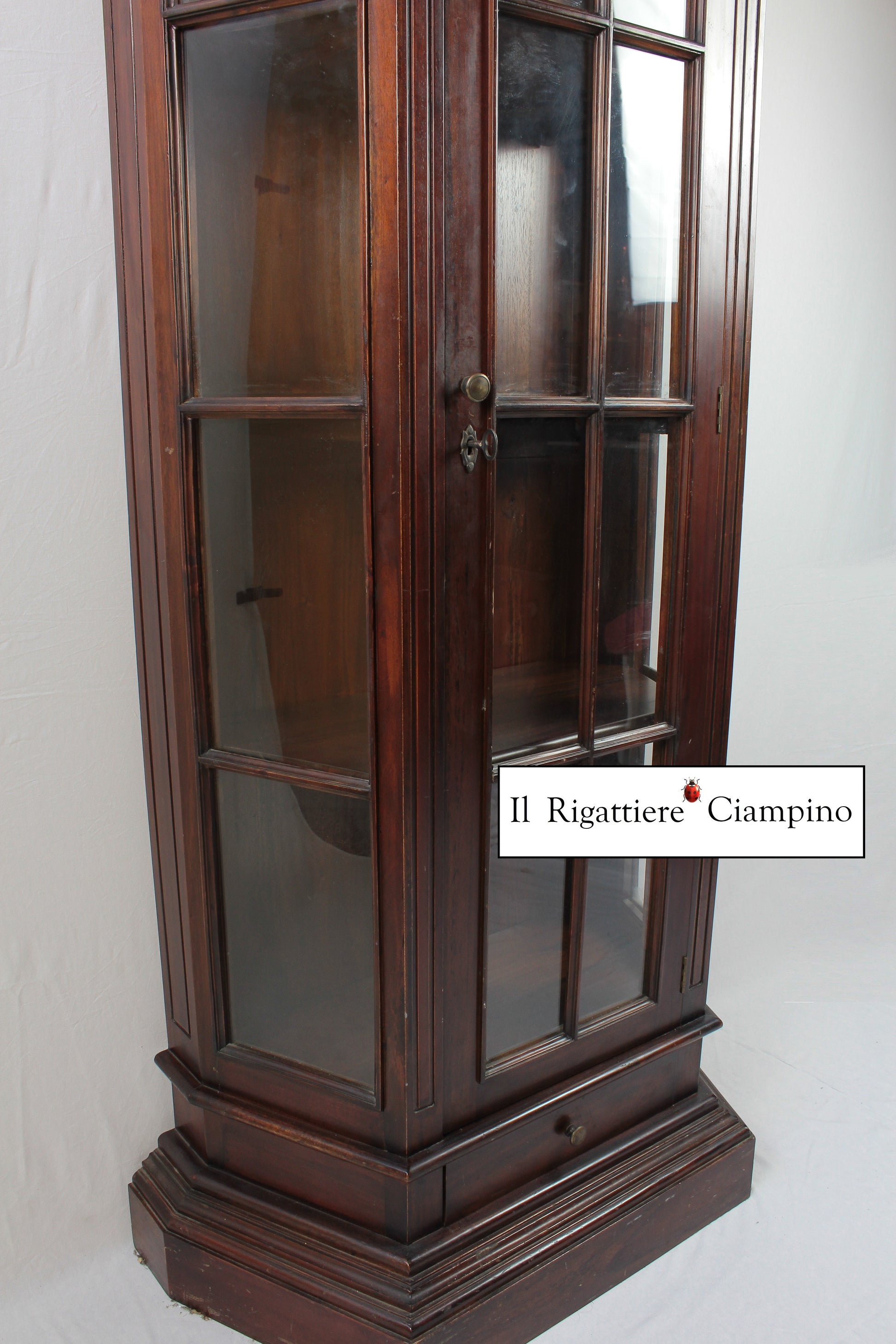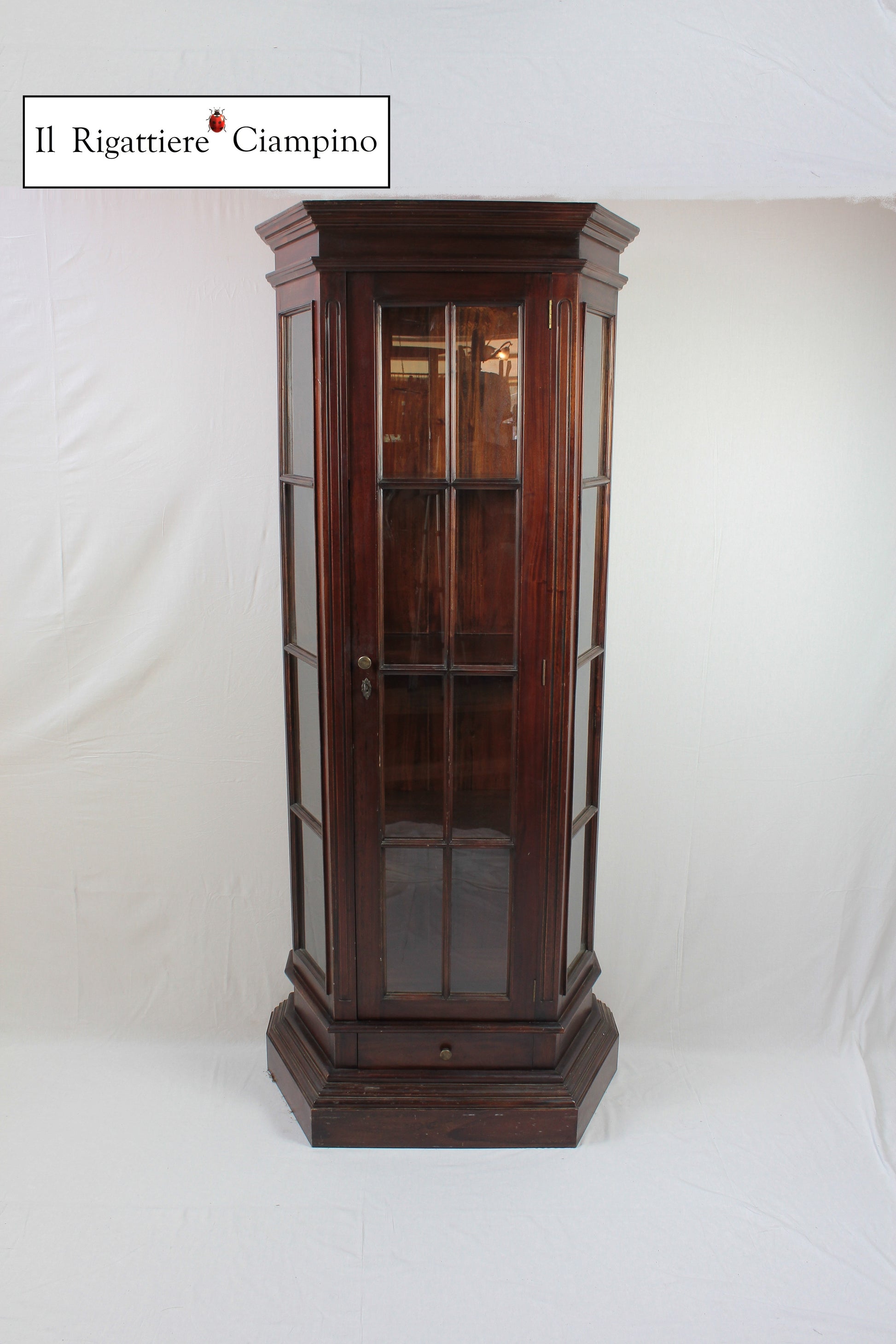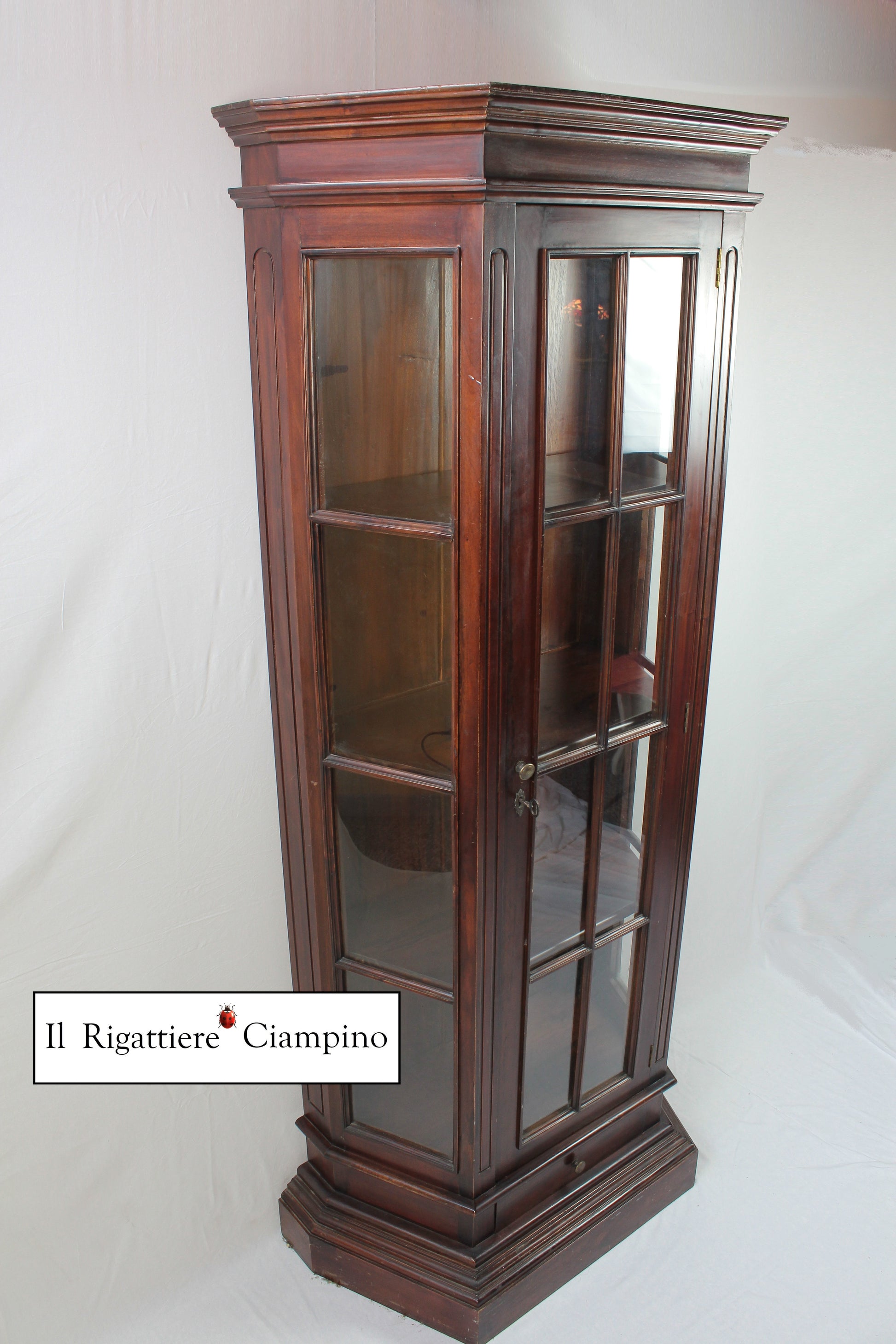 Il Rigattiere Ciampino propone una vetrina modello Milena in legno mogano massello, in stile inglese, molto elegante e bella. Per donare eleganza e serietà al tuo salotto.
